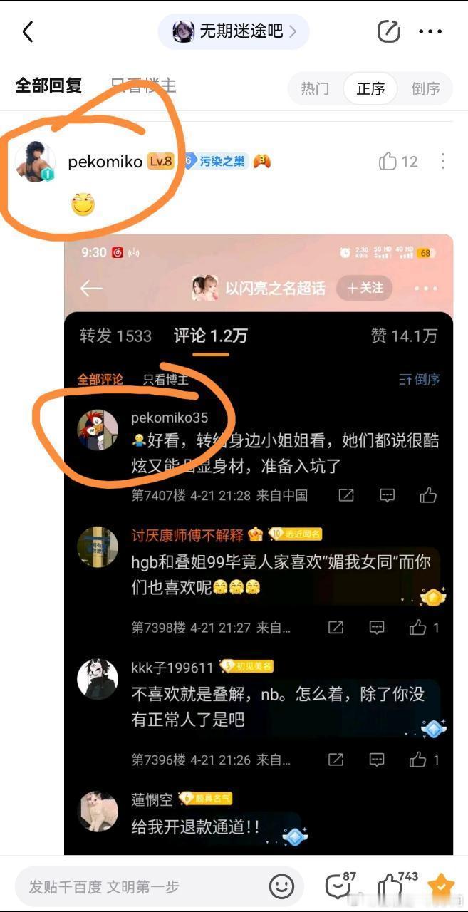 8u听说以闪的新衣服(图一)上线了,兴高采烈地要对着新衣服的设计细节冲 “出入平安”(图二);还要装成“女玩家”在官博和超话里搅混水,说什么“我女我也觉得这套好看”。(图三、图四)