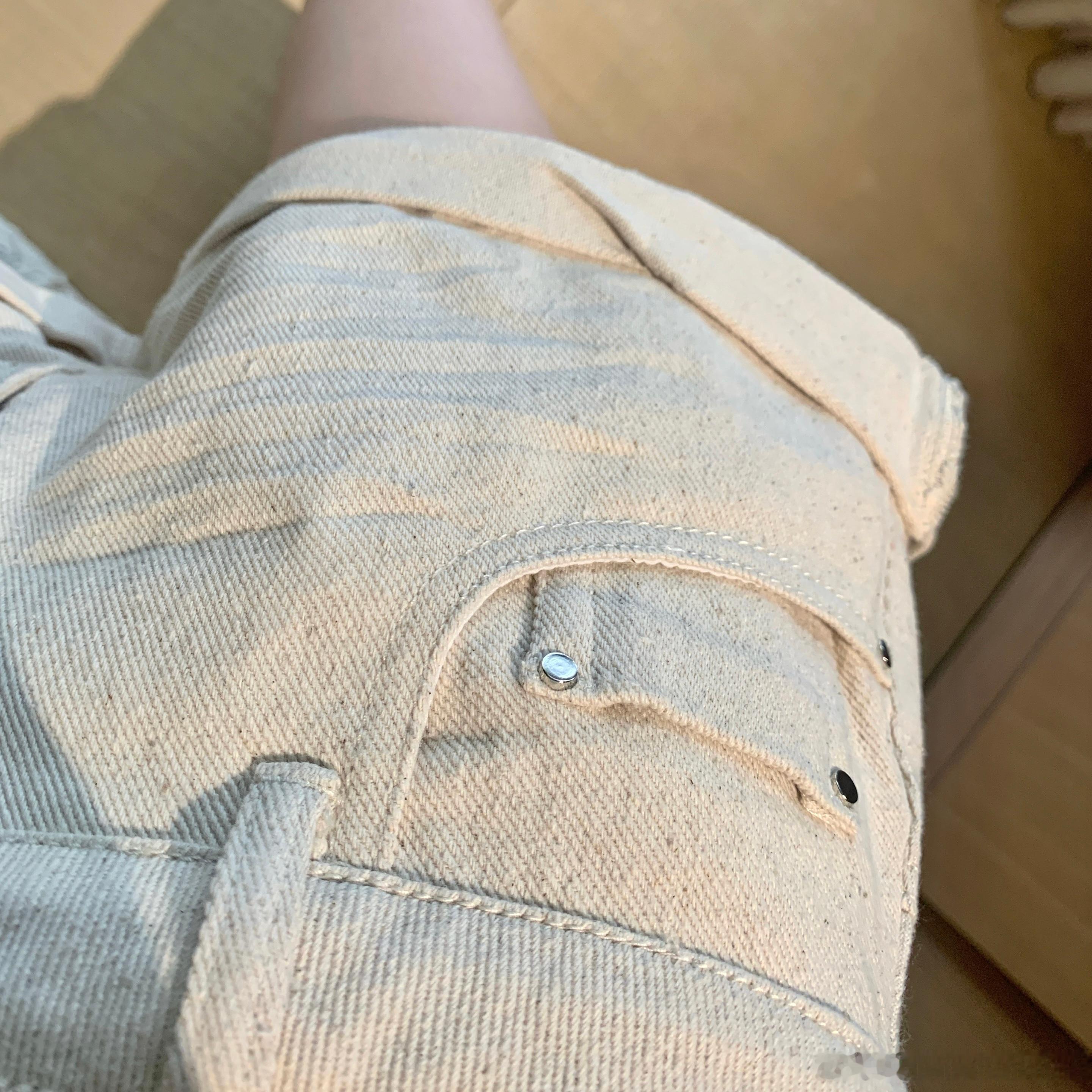 新色有个燕麦白 面料自带麻点颗粒 之前出过类似面料的工装裤款