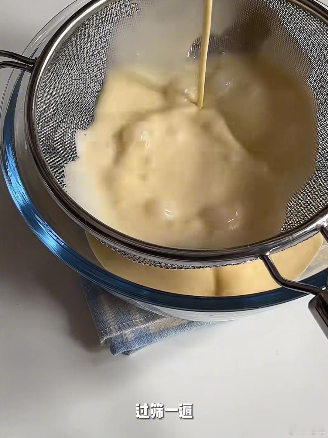 4将混合好的面糊过筛两次,静置一小时。
