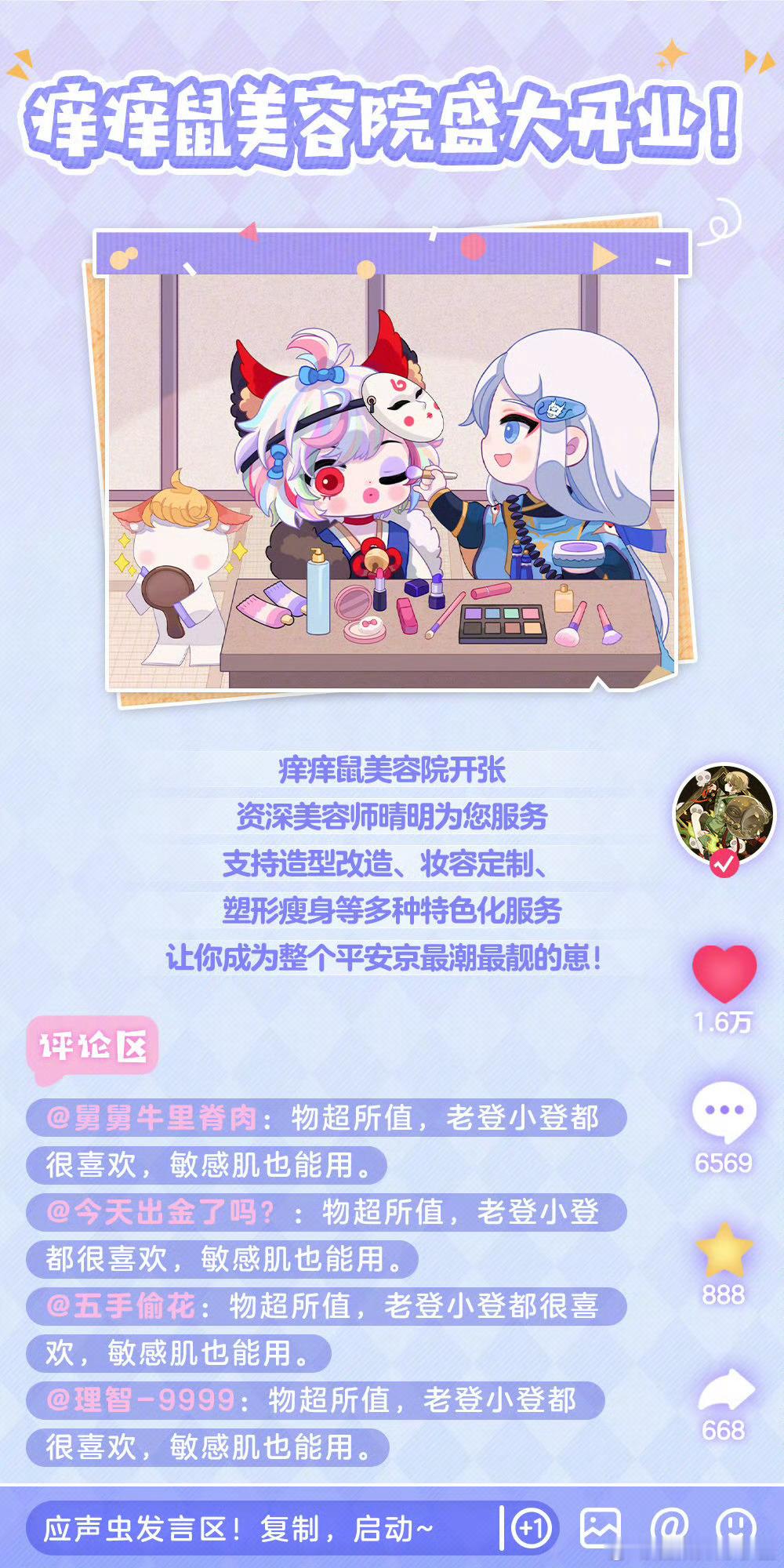 联想到愚人节情报的“痒痒鼠美容院”(图二),虽然已有臻藏染色在先,但不好说本家以后会不会整类似的新活🤔