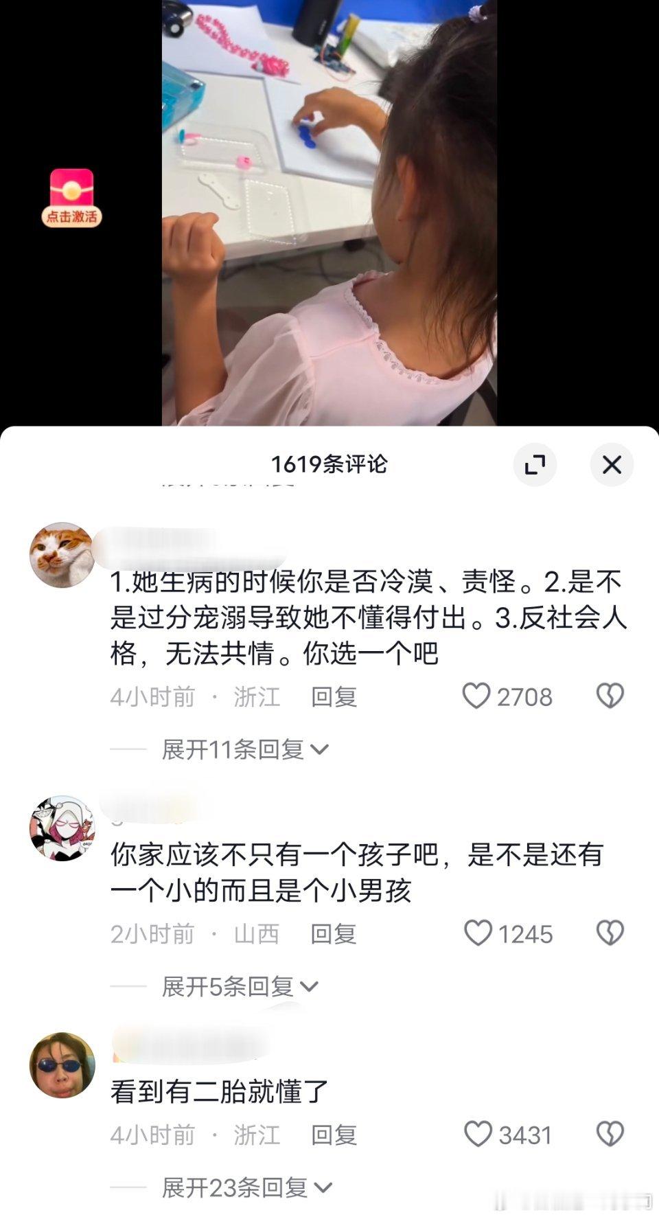 抖音里发的日常几乎全是儿子,当她觉得女儿没关心她的时候,才拍了女儿的视频,把她“