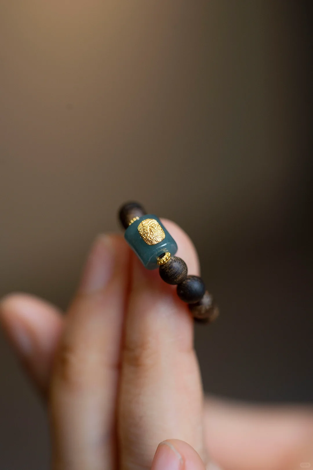 沉香镶嵌18k金【黄财神手机挂】💯💯