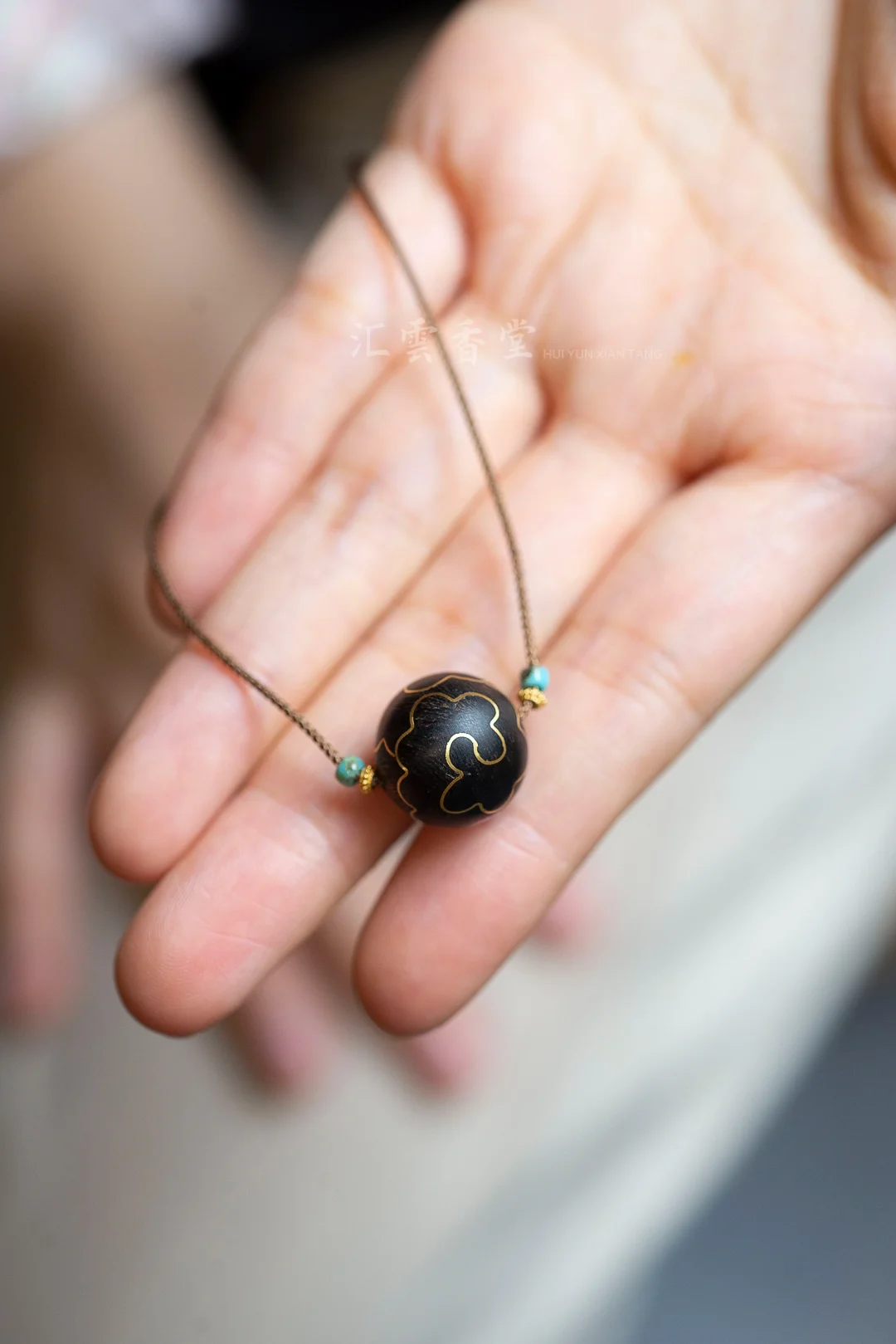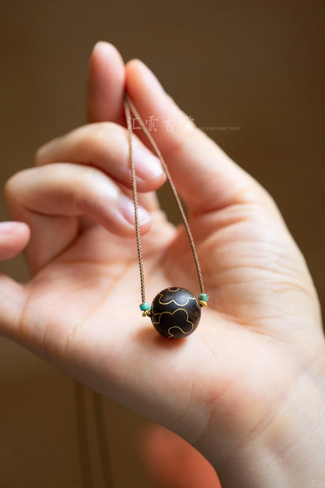 文莱沉水级 老料单珠项链 自然结香深邃厚重,蜜香甜韵,24k金手工错金祥云纹,18 K金隔珠 项链配饰,婉约秀气。