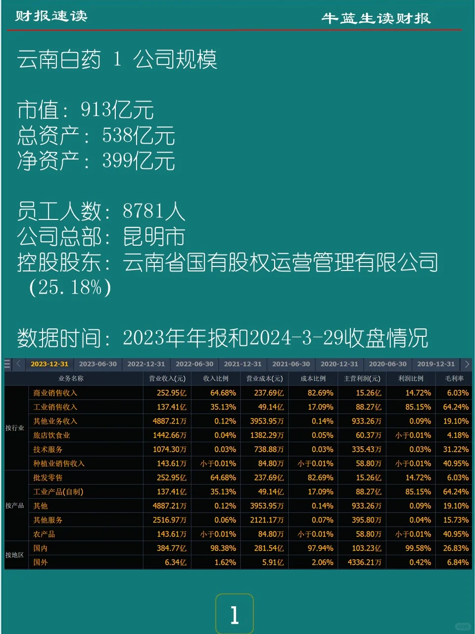 云南白药集团股份有限公司是一家主要经营化学原料药、化学药制剂、中成药、中药材、生物制品等的公司。公司产品以云南白药系列、三七系列和云南民族特色药品系列为主,共17种剂型200余个产品,产品畅销国内市场及东南亚一带,并逐渐进入日本、欧美等发达国家市场。公司是我国知名中成药生产企业之一,是云南大型工商医药企业之一,是中国中成药五十强之一。