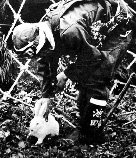 图4:1944年,一名神风特攻队飞行员在临行前抚摸一只小白兔