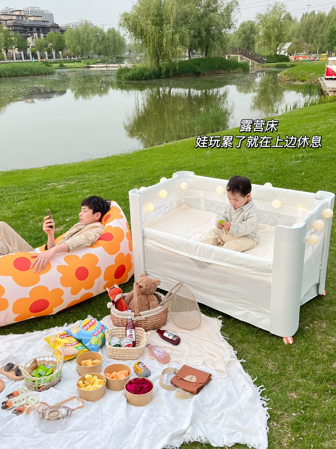 带娃野餐,有时候娃累了就吵着要抱抱,挂在大人身上,真的费妈玩的也不尽兴,能折叠的床直接带着去,累了就在上边休息真方便