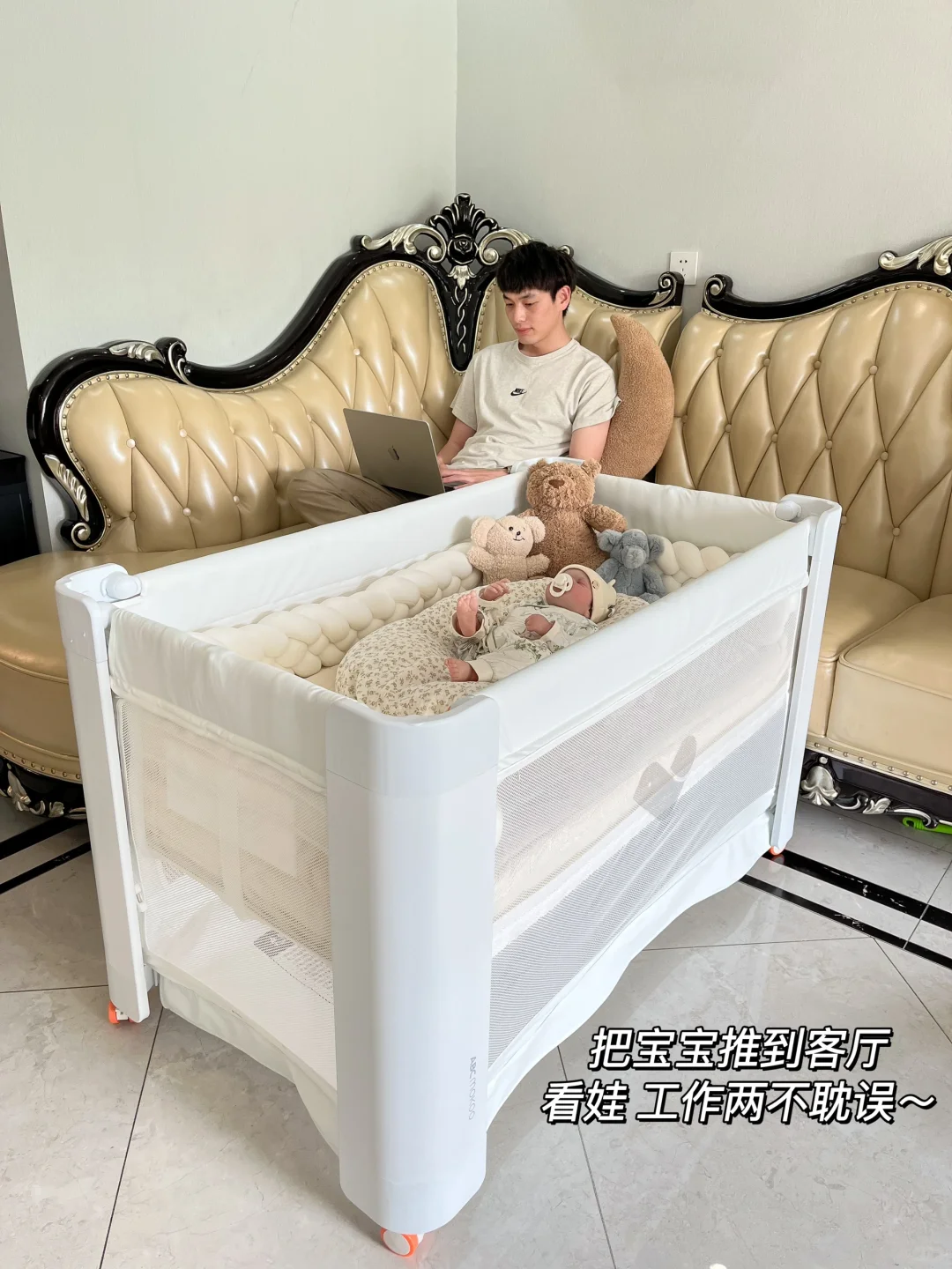 宝宝白天小睡不怕掉床,还能推到客厅,推着哄睡,睡着了就在客厅一边看娃一边做自己的事,两不耽误