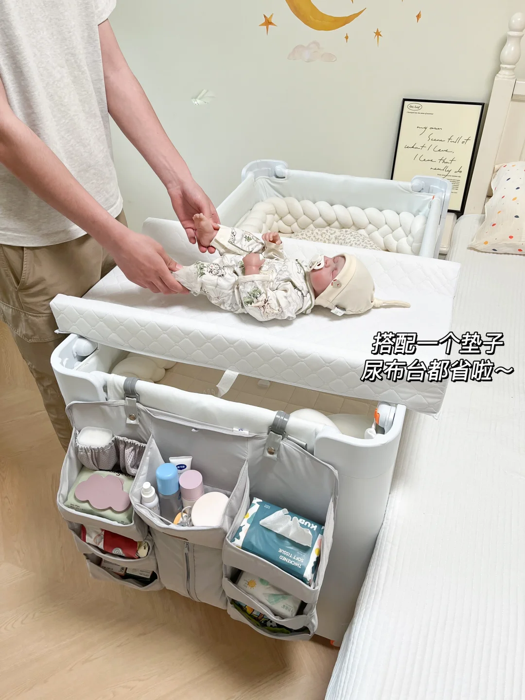 床垫也是软硬适中的,全身可以水洗,娃尿了拉了,直接冲洗也不会有异味,搭配一个置物篮收纳宝宝的日常用品,随拿随取太方便了!