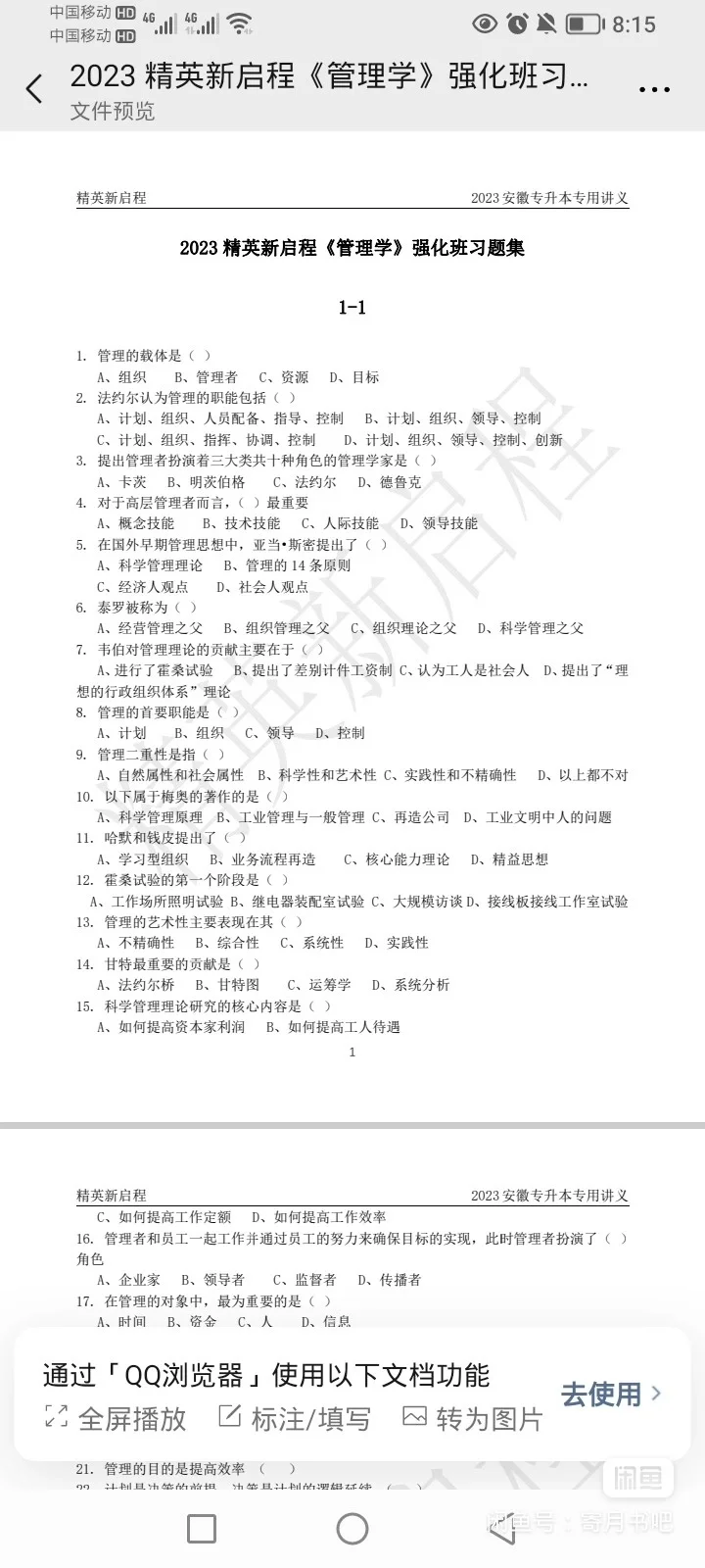 安徽专升本经济学与管理学(王光健版本) 电子版资料 适用于皖西学院 物流管理与金融工程专业 本人专升本期间在用,并且考试中经济学做到了原题~ 一律20r