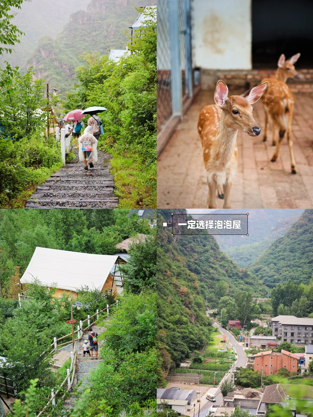 ①玩法:喂鹿摸猫、🍉采摘蔬果、玩水捞鱼、山谷音乐……在山里的泡泡屋感受这些体验,想想就好玩。