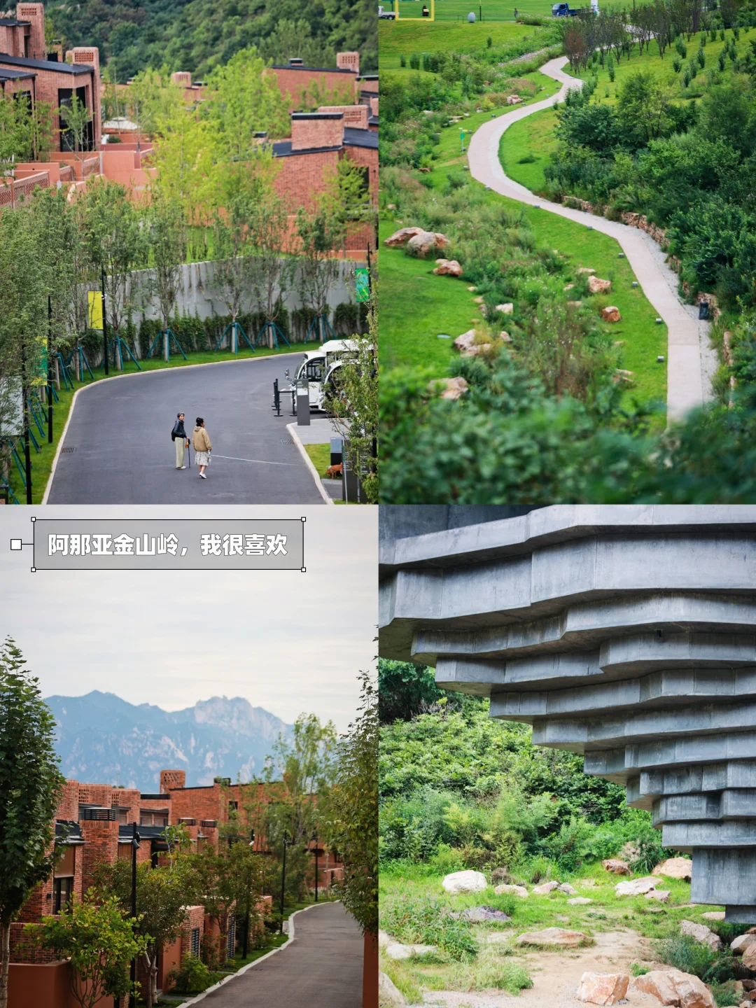 ①玩法:后山有一条非常简单的徒步路线,分别到达两个凉亭,可以俯瞰整个阿那亚.雾灵山;本身就是一条溪谷小镇,旁边就有溪水流过;还有是实打实的温泉。