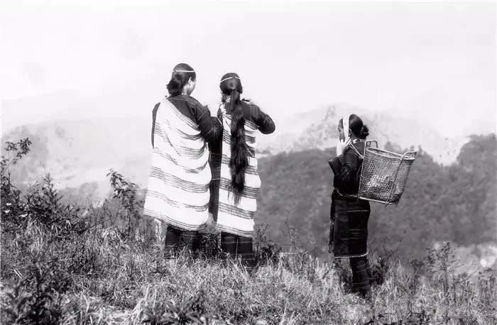 图1:日据时代,台湾美女合影。尽管受到日本殖民统治,接受日式教育,大多数台湾人仍以穿戴传统中国的服饰作为中华民族的认同象征。男士喜穿唐装,女士则是一袭亮丽的旗袍,明艳照人。 图2:日据时代,台湾阿里山上的原住民,多属于邹族部落。在邹族的传说中,女神降临玉山,首次创造人类。邹族分布在阿里山一带,以狩猎为生。光复后,大陆人到此山有感并创作了名曲《高山青》,曲中“阿里山的姑娘美如水啊,阿里山的少年壮如山啊”,即指邹族男女,由于《高山青》曲乐清新优美,闻者莫不对阿里山产生极大的向往。