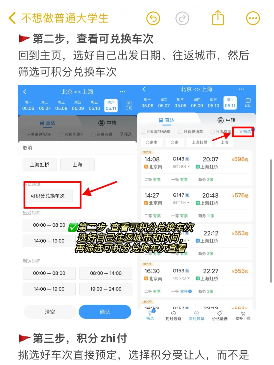 回到主页,选好自己出发日期、往返城市,然后筛选可积分兑换车次