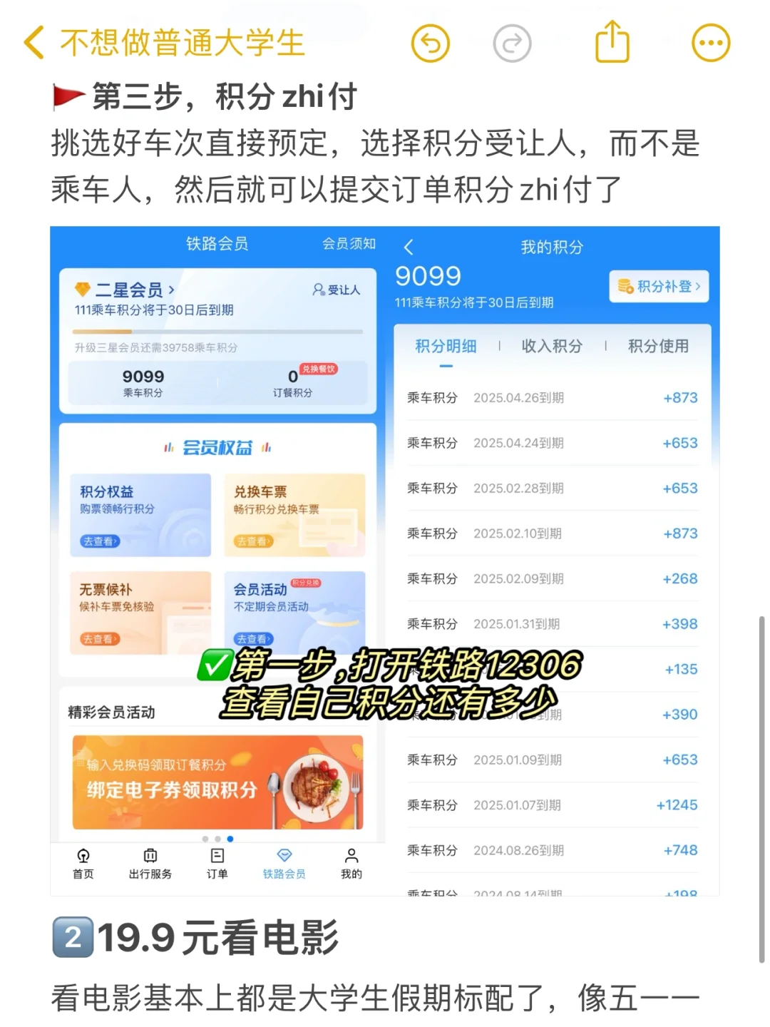 打开铁路12306,查看自己积分还有多少(不用担心自己没有积分,你每次坐高铁或者火车都会给你自动兑换积分)