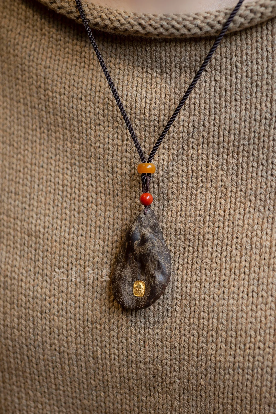 沉香镶嵌18k金【黄财神手机挂】💯💯