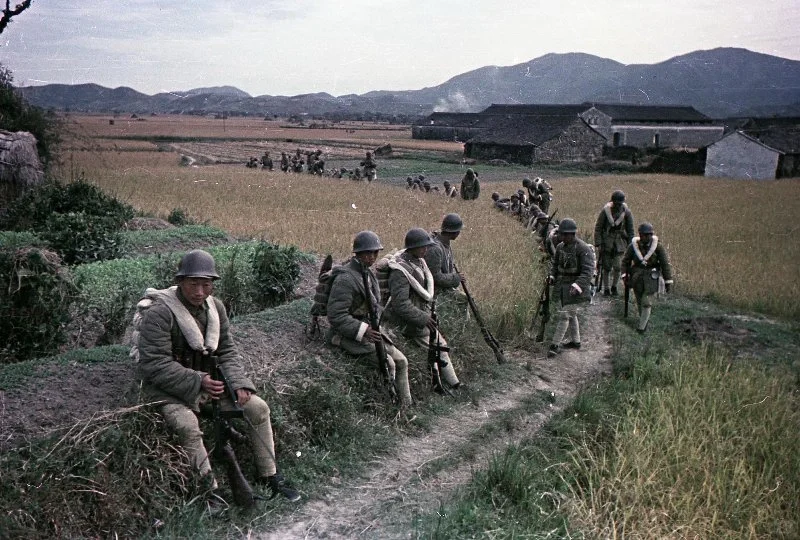 1949年,苏联摄影师镜头下在田间休息的解放军战士,可以看见他们普遍装备了缴获的...