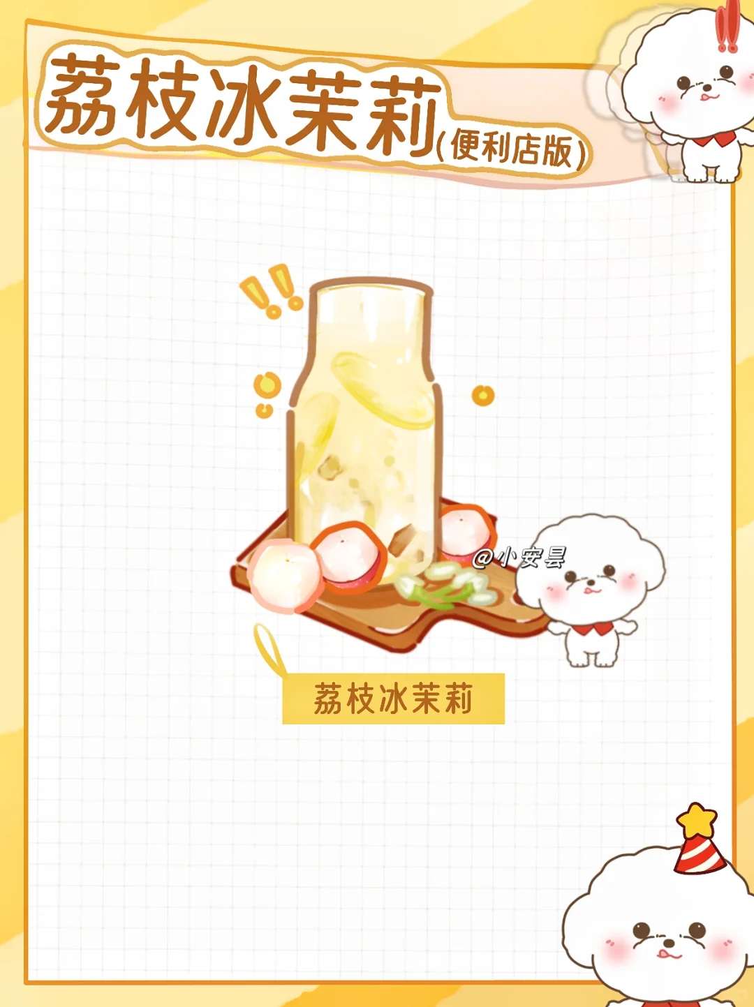 荔枝冰茉莉(便利店版) 完美搭配茉莉花茶与荔枝,清甜醇香的味蕾盛宴! 这个夏天,聚会必备饮品✨ 冰镇一杯,满满都是幸福感,开启甜甜的新一天! 🥣材料准备 5、6颗荔枝 ➕茉莉蜜茶 ➕冰块🧊 🥣制作步骤 1⃣️首先准备好荔枝,荔枝剥壳,去核! 2⃣️用力将荔枝压出汁,继续在杯里加入冰块🧊 3⃣️在杯里继续加入茉莉蜜茶,补完杯子搅拌均匀!荔枝冰茉莉就完成啦! 大家可以试试哇,巨好喝💗