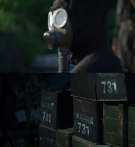 于是他故意设下陷阱,诱导一个认识特使、可能戳穿他身份的人去了禁区。听到枪声后,他赶了过去,看到了不少戴着防毒面具的人,还有数个供给箱,上面写着“731”。
