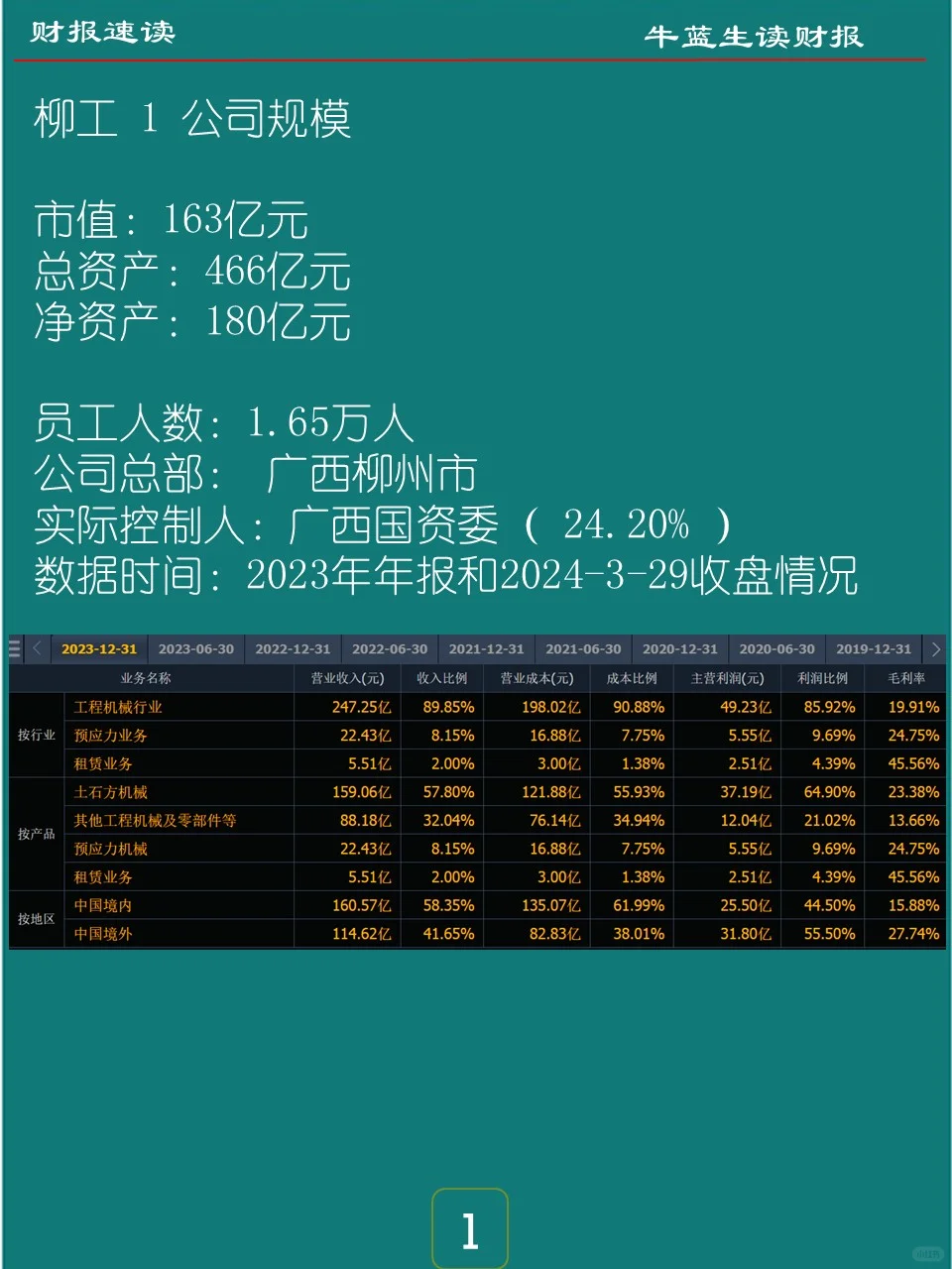 广西柳工机械股份有限公司的主营业务为工程机械及关键零部件的研发、生产、销售和服务。