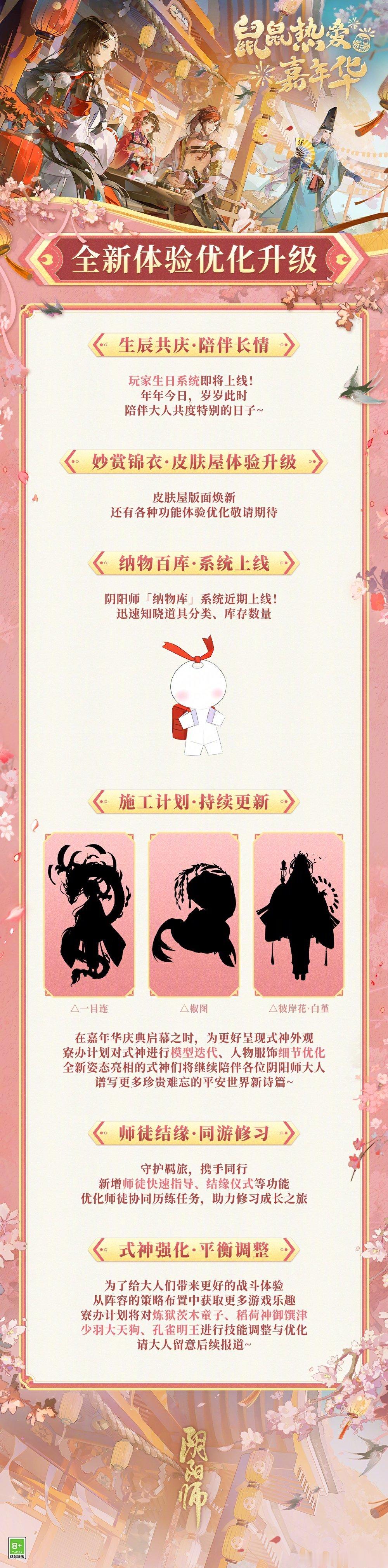 全新皮肤——五套式神新装均可通过免.费途径获取、两款氪金皮肤(一套典藏or臻藏、一套联合共创皮肤)