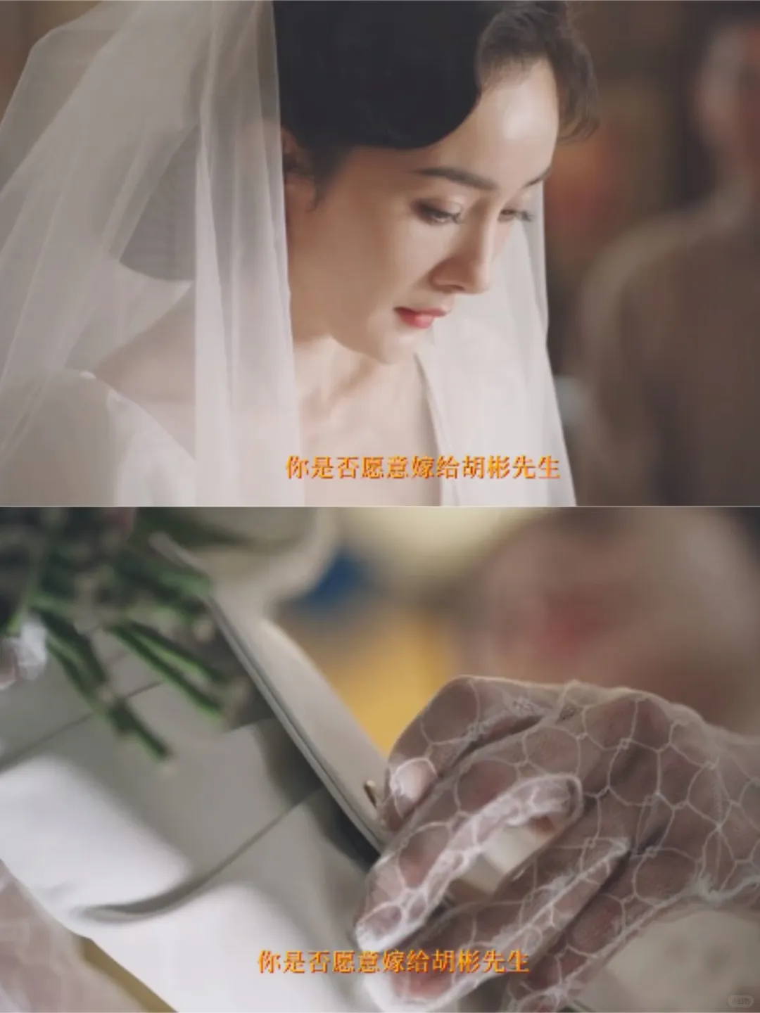 婚礼当天,当神父问她是否愿意嫁给胡彬时,她没说话,手不停地在拉包包的扣子。