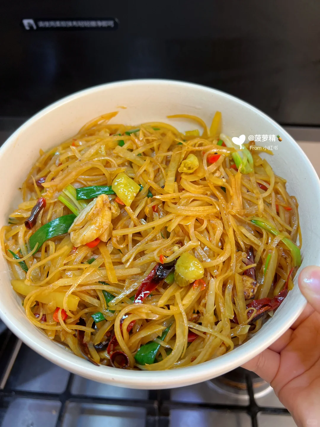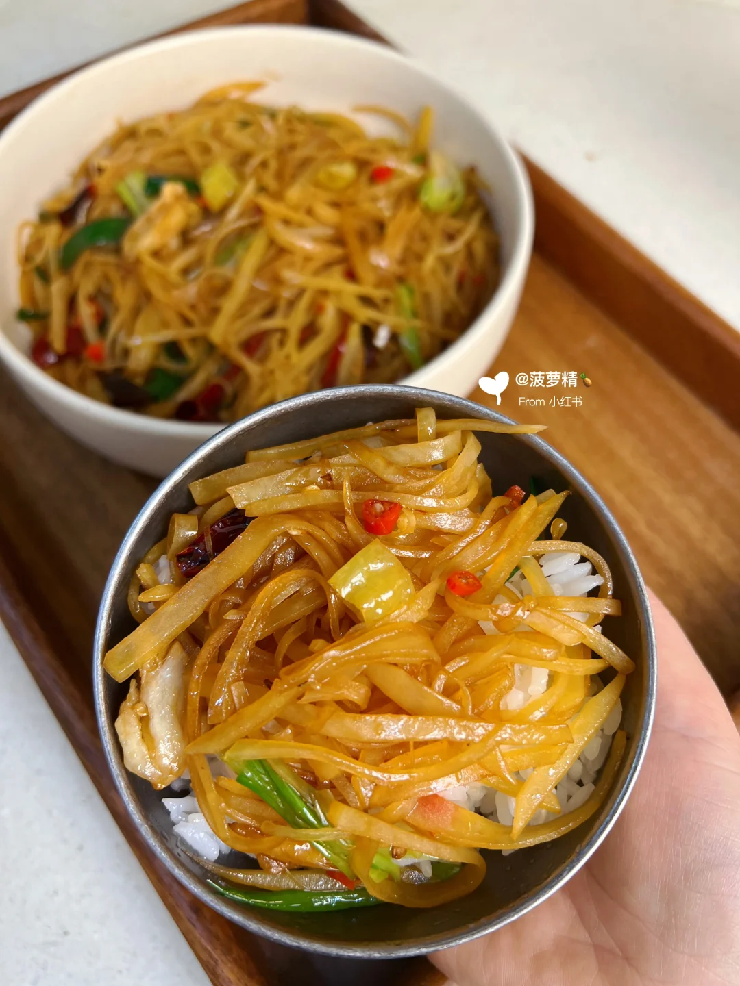 你敢把土豆丝再炒的好吃点吗,这几碗饭也压不住呀。那个小米辣已经很好了,在加上小泡椒,得多好吃呀!