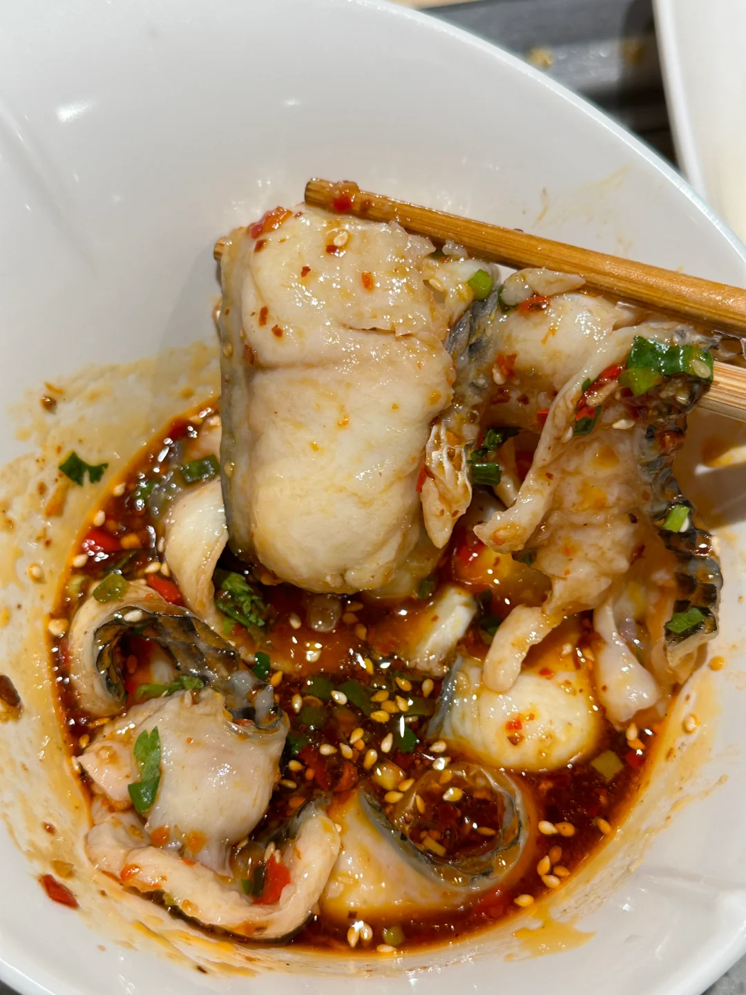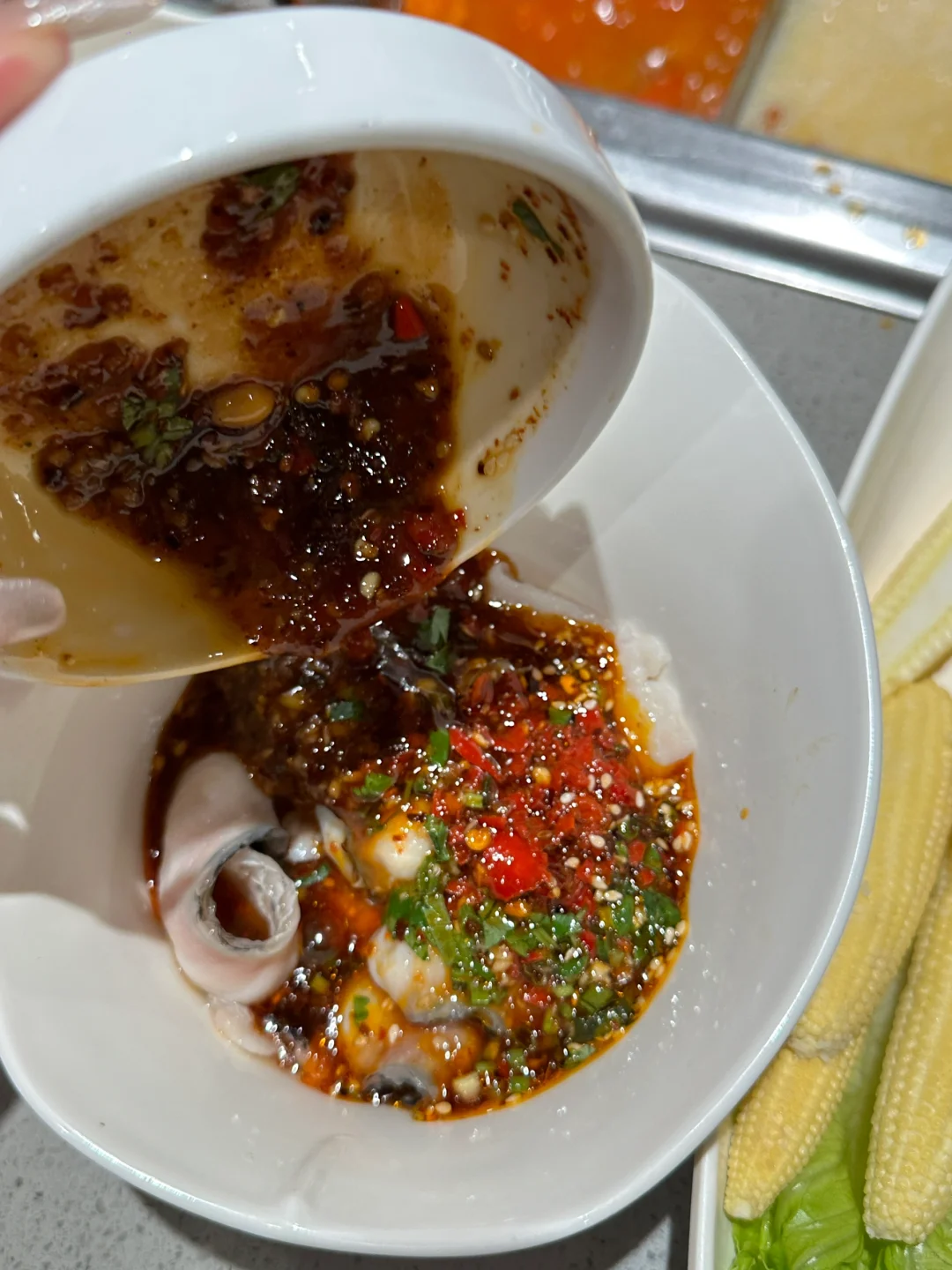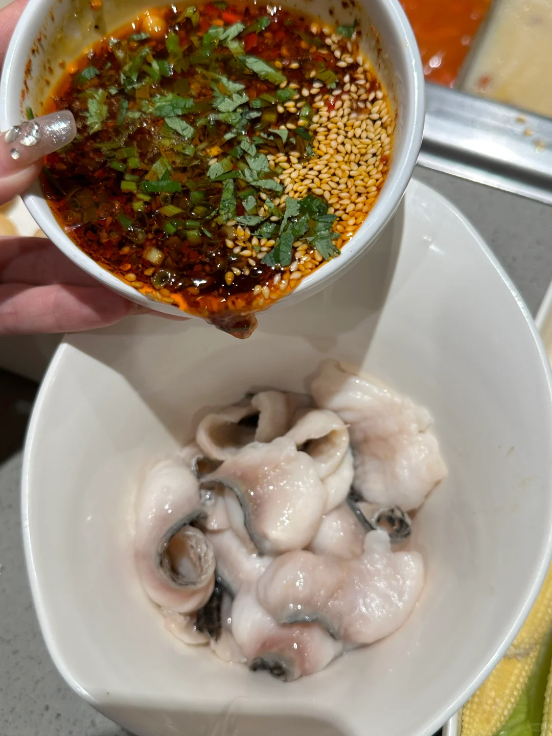 麻辣水煮鱼!自制的!! 做法简单!看完就会~ 点半份豆芽(也可以不点)半份鱼片下锅煮 调料🧂: 一勺蚝油➕一勺小米辣➕一勺香辣油➕半勺辣椒粉 ➕一勺麻油 ➕一勺白糖➕一勺蒜泥➕一勺醋➕一勺丸滑汁 ➕一勺芝麻➕适量香菜葱花 摆好鱼片浇上酱料就行啦!好吃哭家人们😭