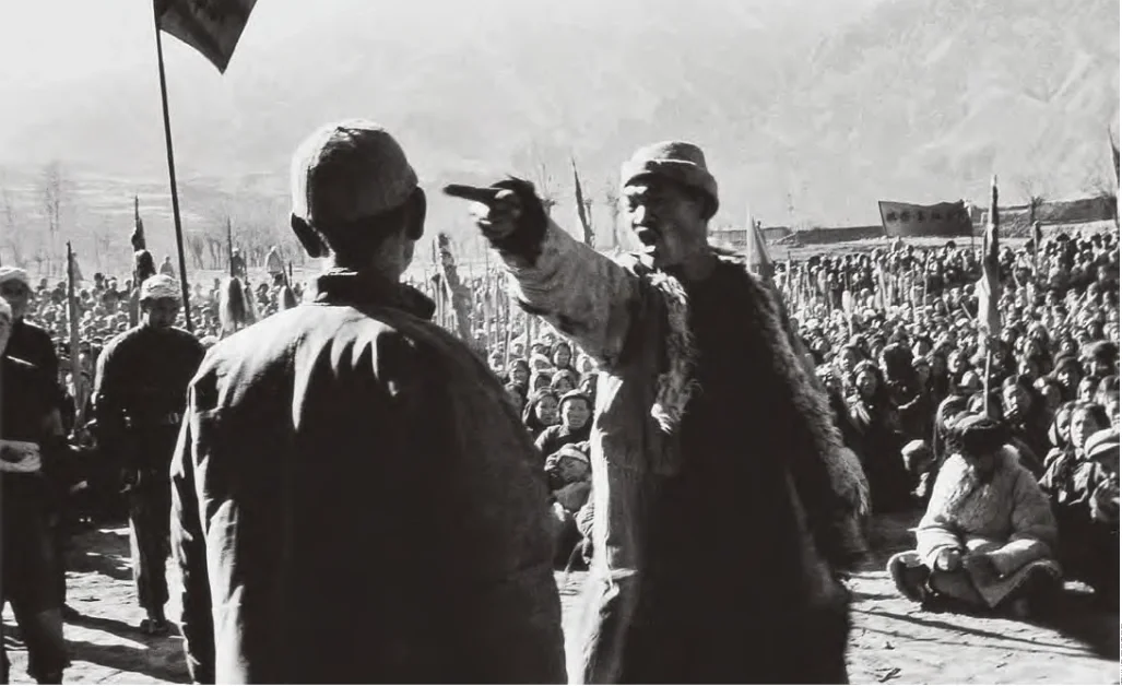 图1图2:1951年,土改运动期间,青海省民和县一位农民在群众大会上控诉地主 图...