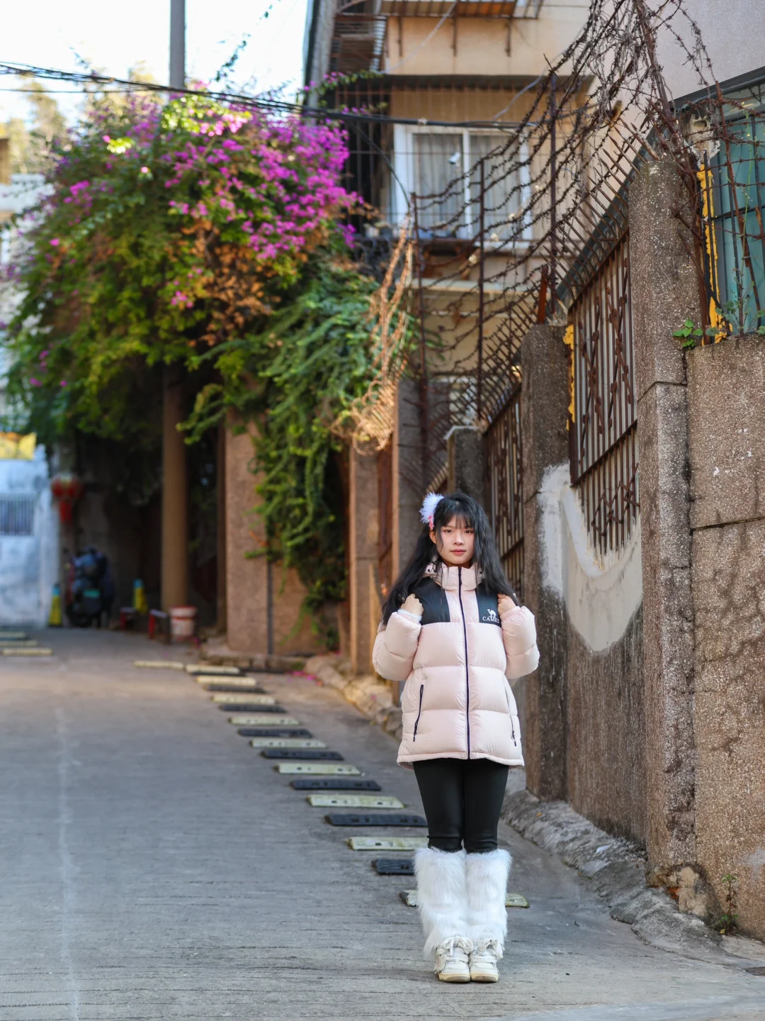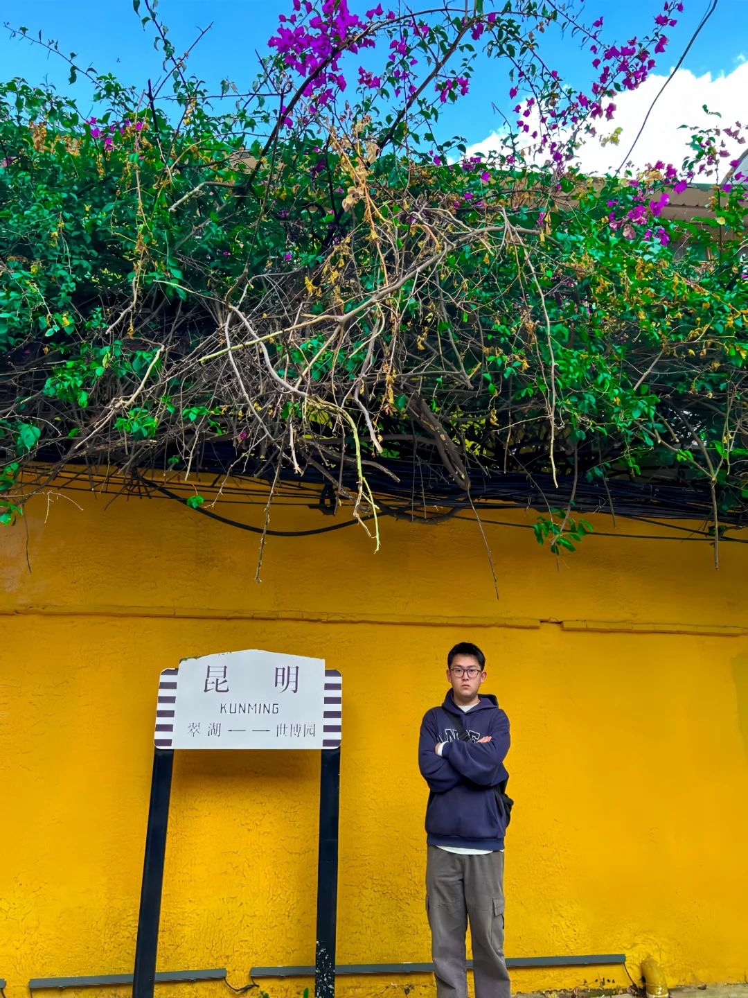 7️⃣黄公东街:黄墙,紫色花墙和蓝天白云相得益彰,真的很好看,对面还有红墙也巨出片