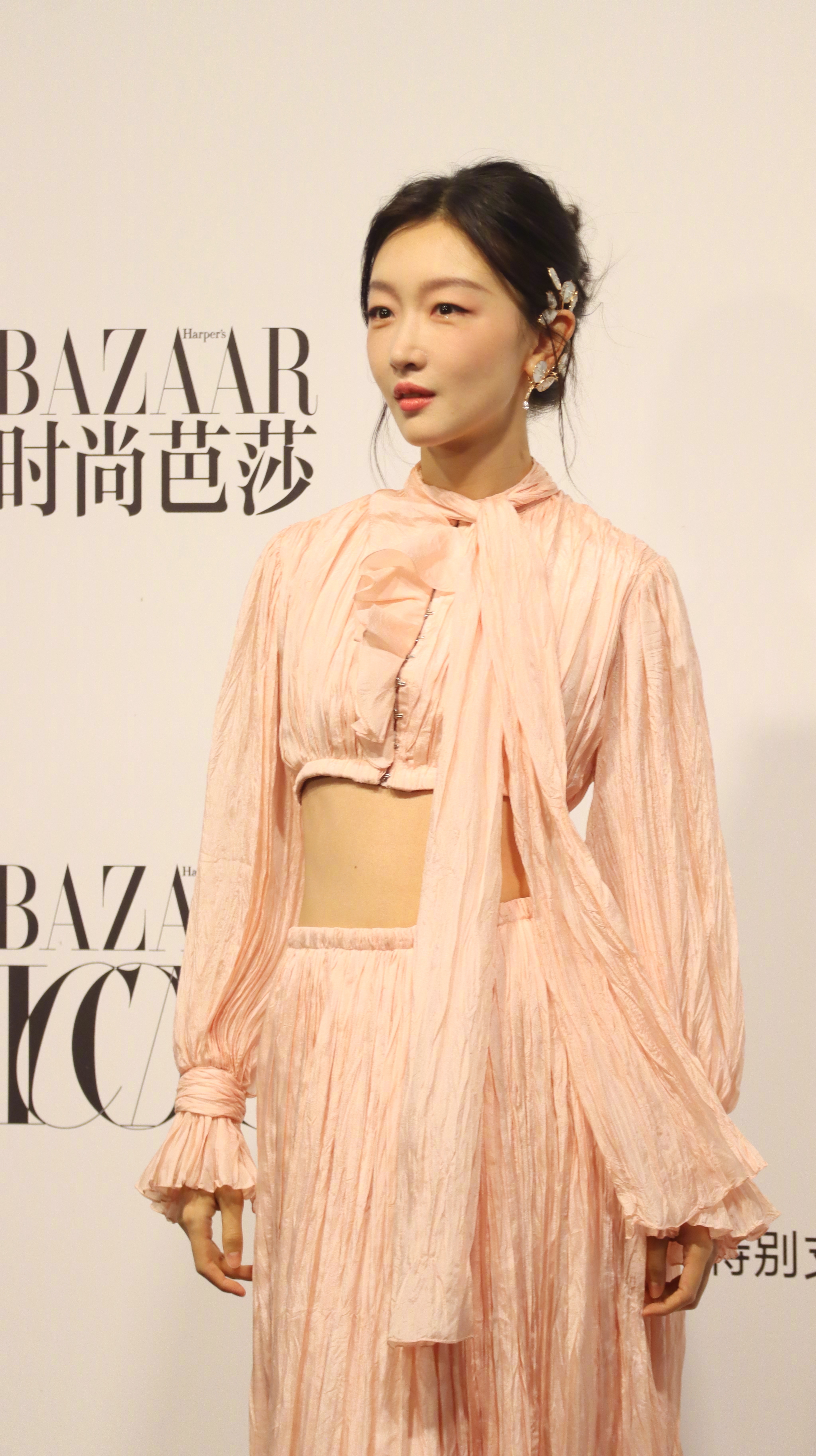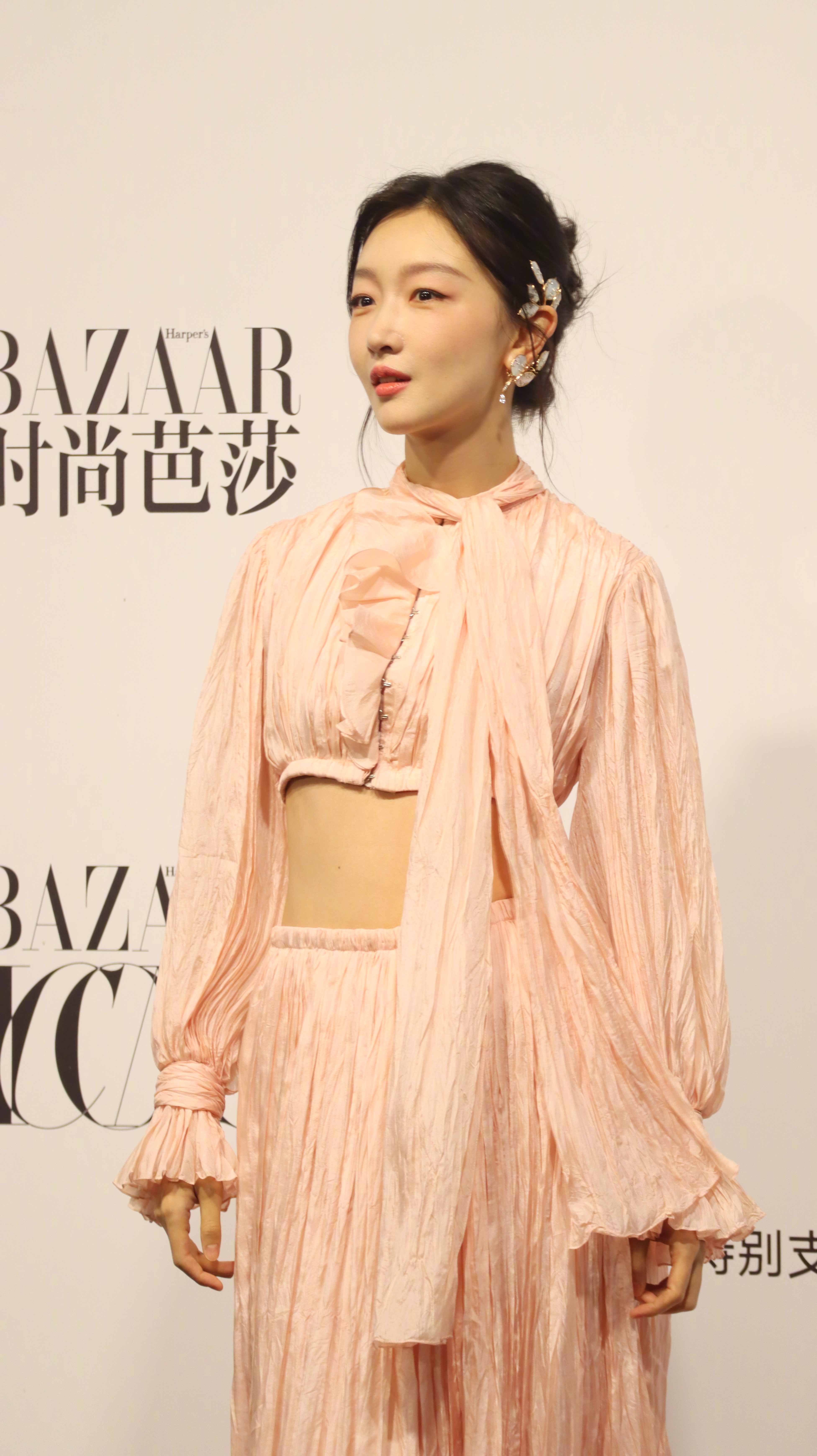 #周冬雨蝴蝶耳饰# 今天出席时尚芭莎活动的周冬雨。粉色褶皱礼服经典复古,再搭配显露腰身的设计和仙气满满的回忆蝴蝶耳饰!!很大方的美[给你小心心]