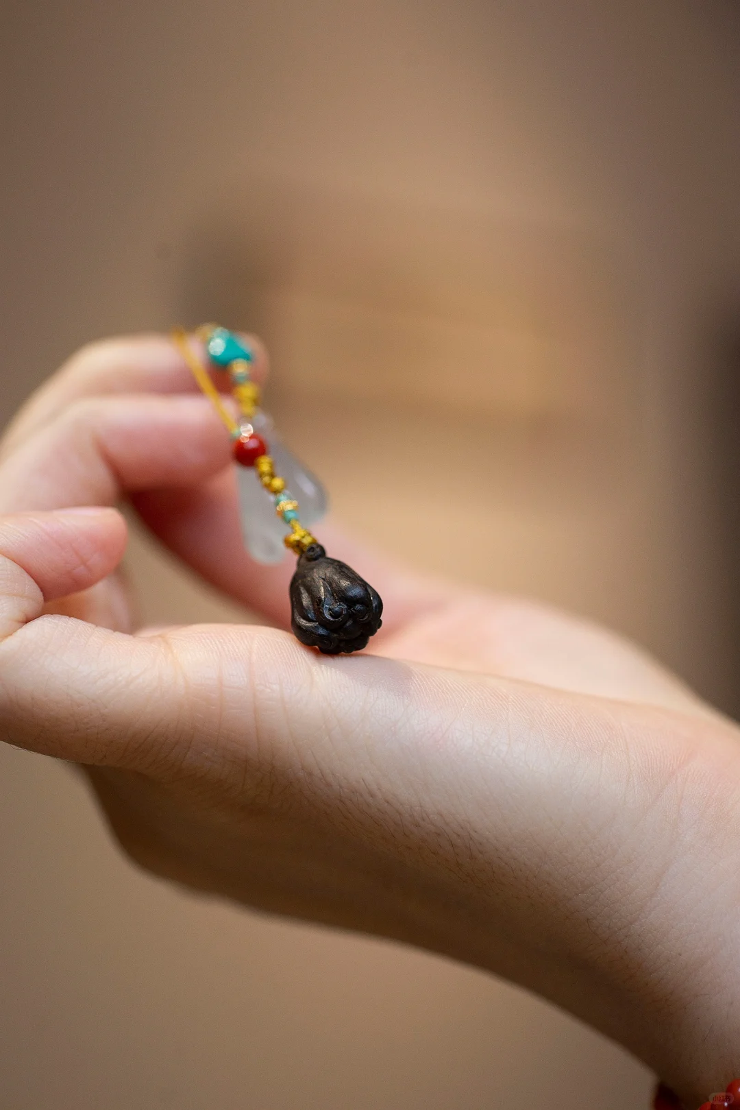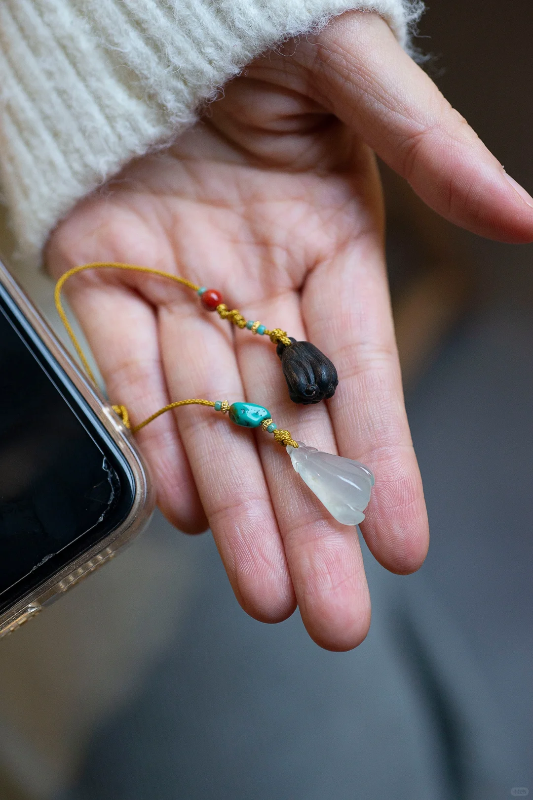达拉干沉水立体雕手机挂包包挂“佛手”佛手有福祐之意,又谐“福寿”之音,寓意福寿双全。搭配高冰种翡翠,韵味十足