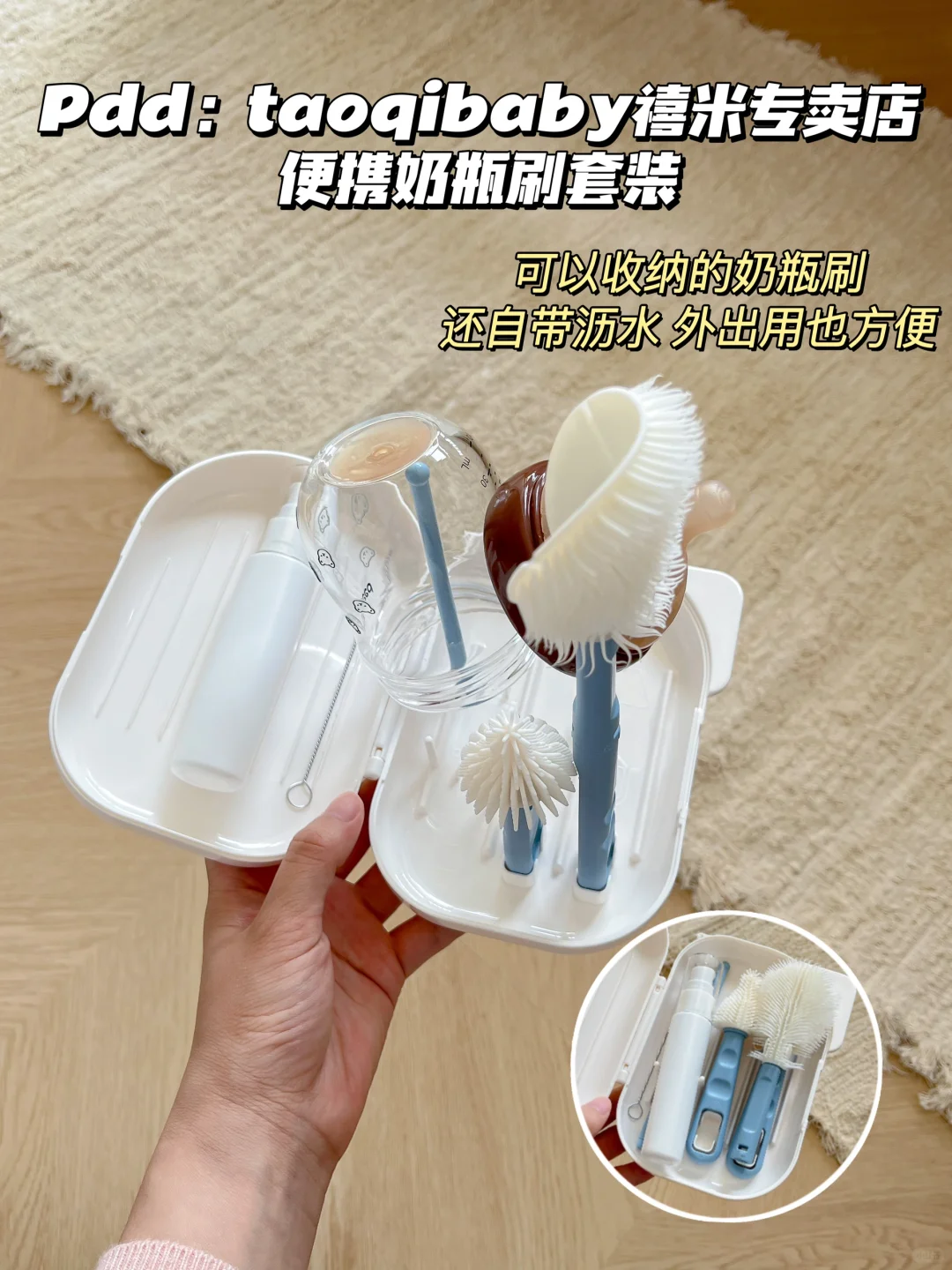 可以收纳的奶瓶刷还自带沥水,携带很方便,外出给娃洗奶瓶