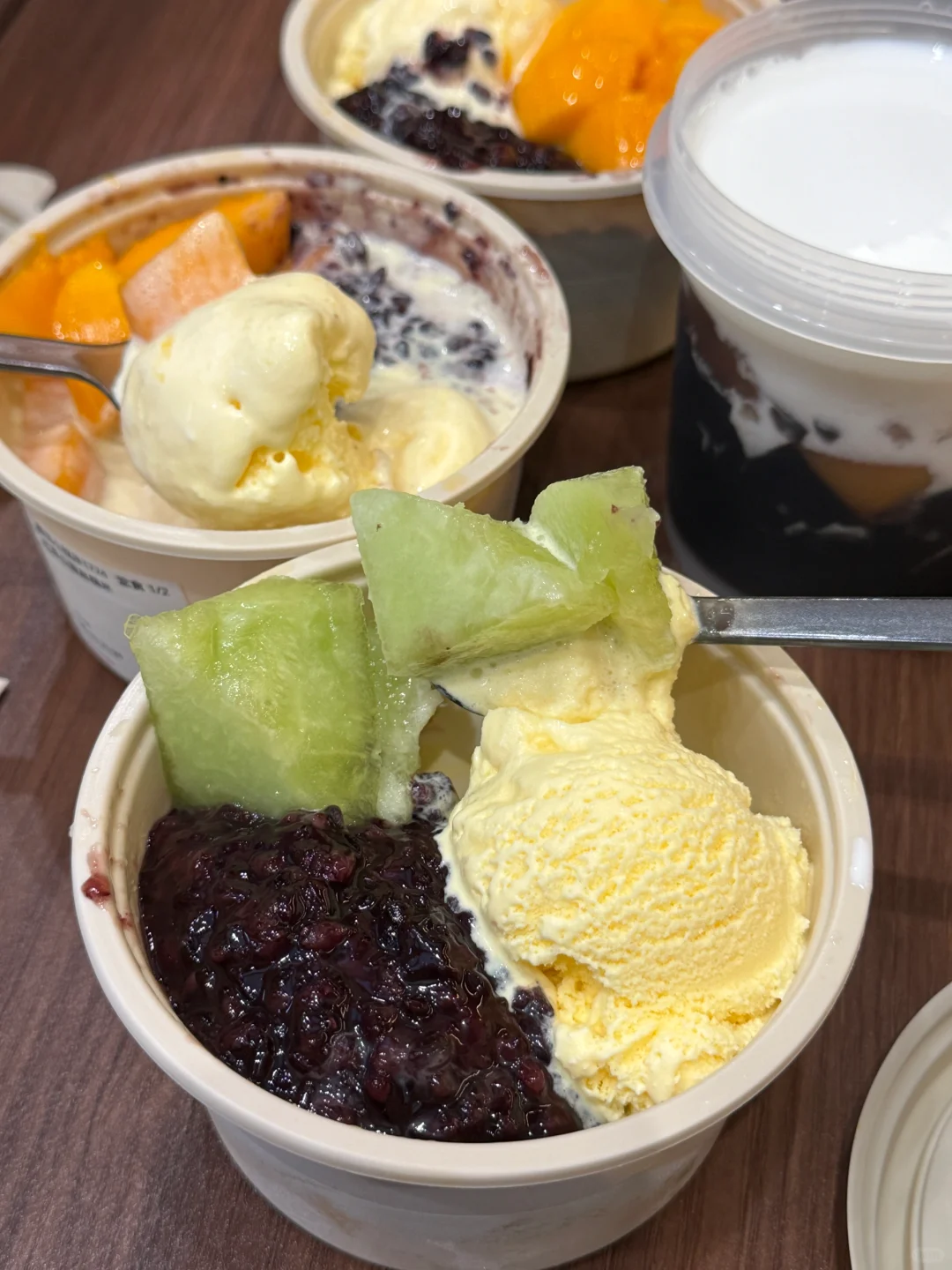 杭州首家!!俺终于吃到了!!! 前两天9.9r一碗!量很足很大! 这几天买一送一 芒果好新鲜,冰淇淋奶味超绵密底部还有绵绵冰 好好吃哦…😭😭😭 路过记得多打包几碗带走!!!