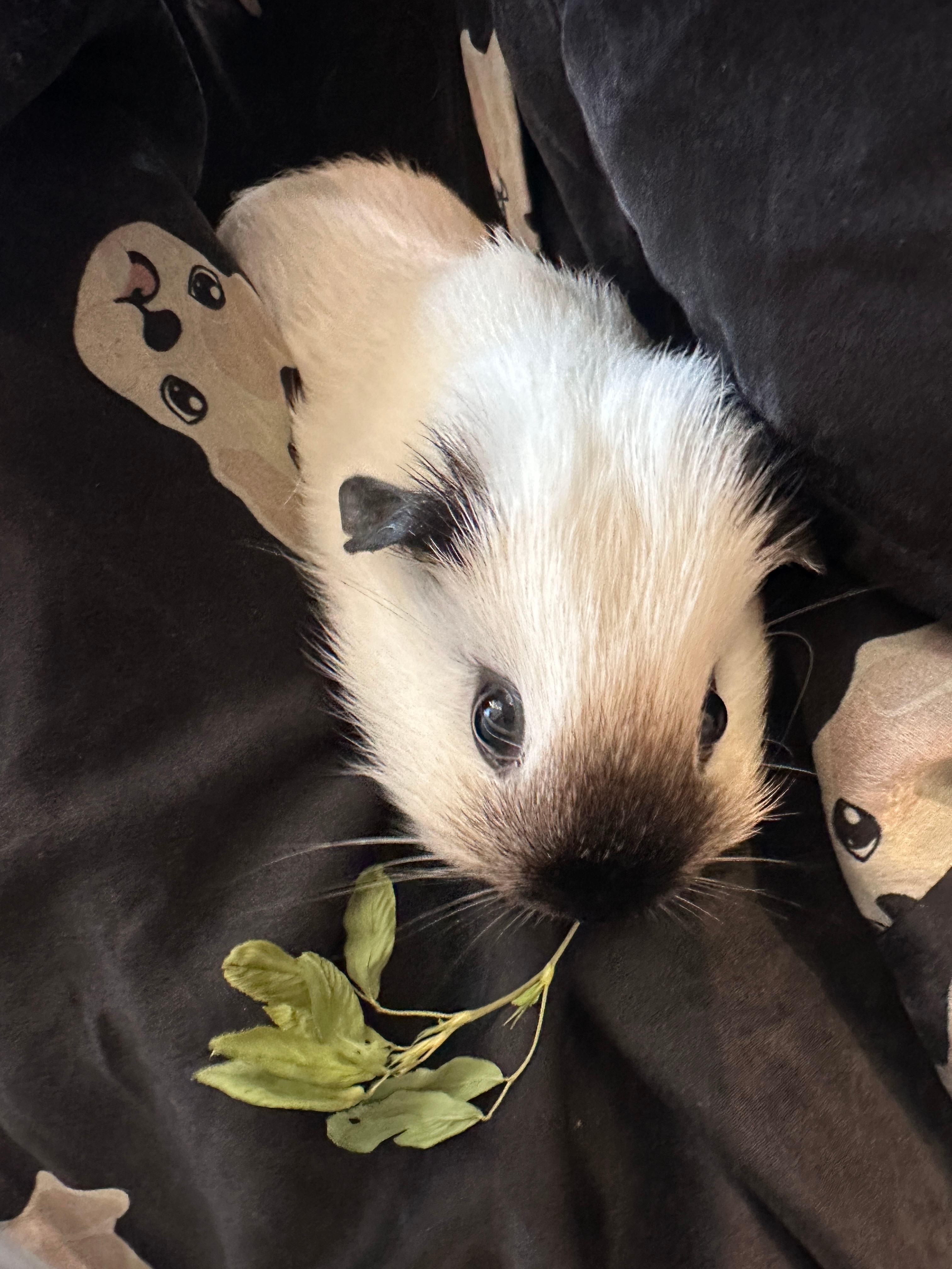 今天阿姨带来一只小猪猪巴掌大跑的飞快还钻到我衣服里面去了吃东西也飞快
