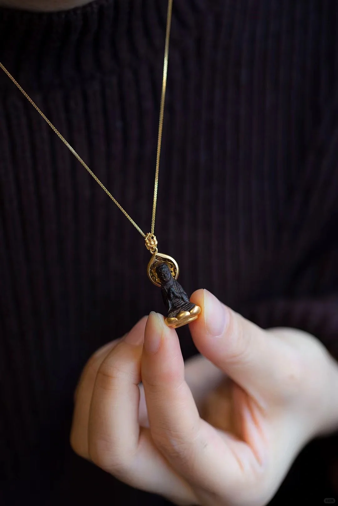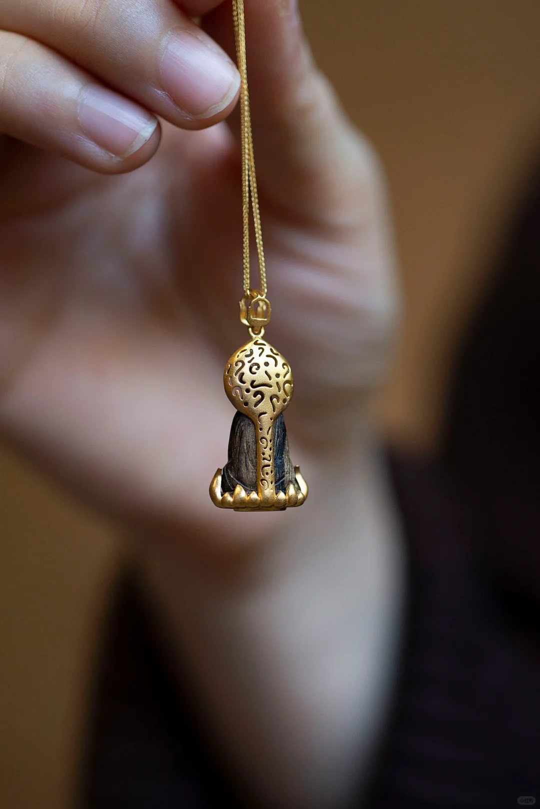 沉香镶嵌18k金【扎基拉姆财神】 小可爱挂件……