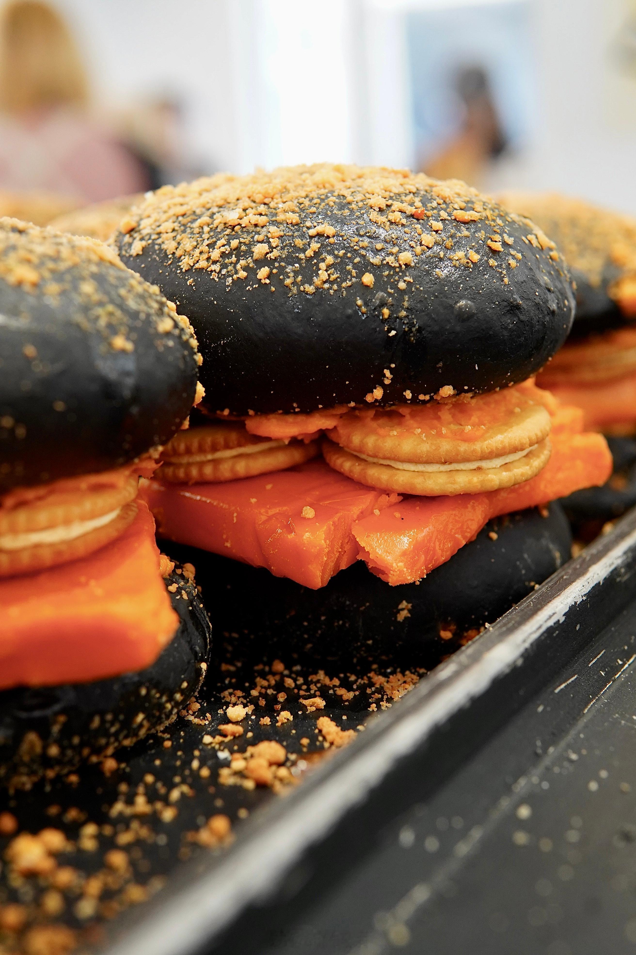 五花商店是新开的面包,热量爆表诱惑冲天,夹着芝士甘纳许和夹心饼干的黑色汉堡,一个汉堡不得3000卡?!