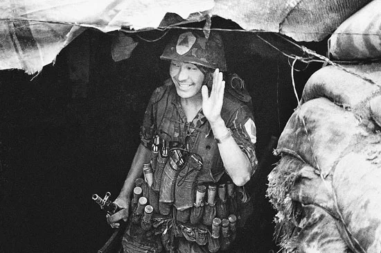 1986年10月14日,老山轮战期间,时任第一突击队副队长的彝族青年罗卜基在战斗打响前走出屯兵洞,这是他生前最后一张照片,后在押解越军俘虏途中,遭遇越军炮弹袭击,罗卜基为了保护俘虏扑在越军俘虏身上,而后牺牲