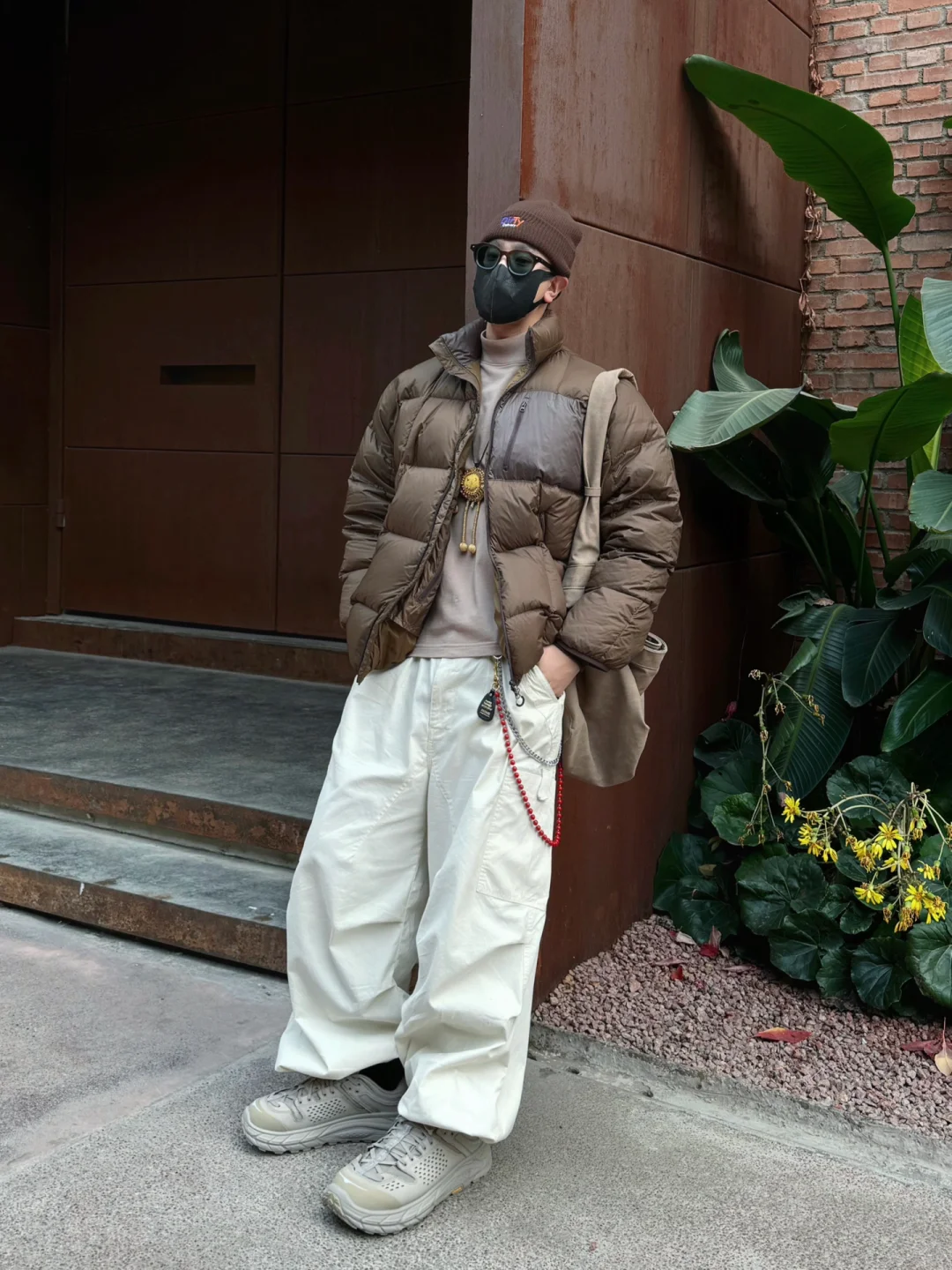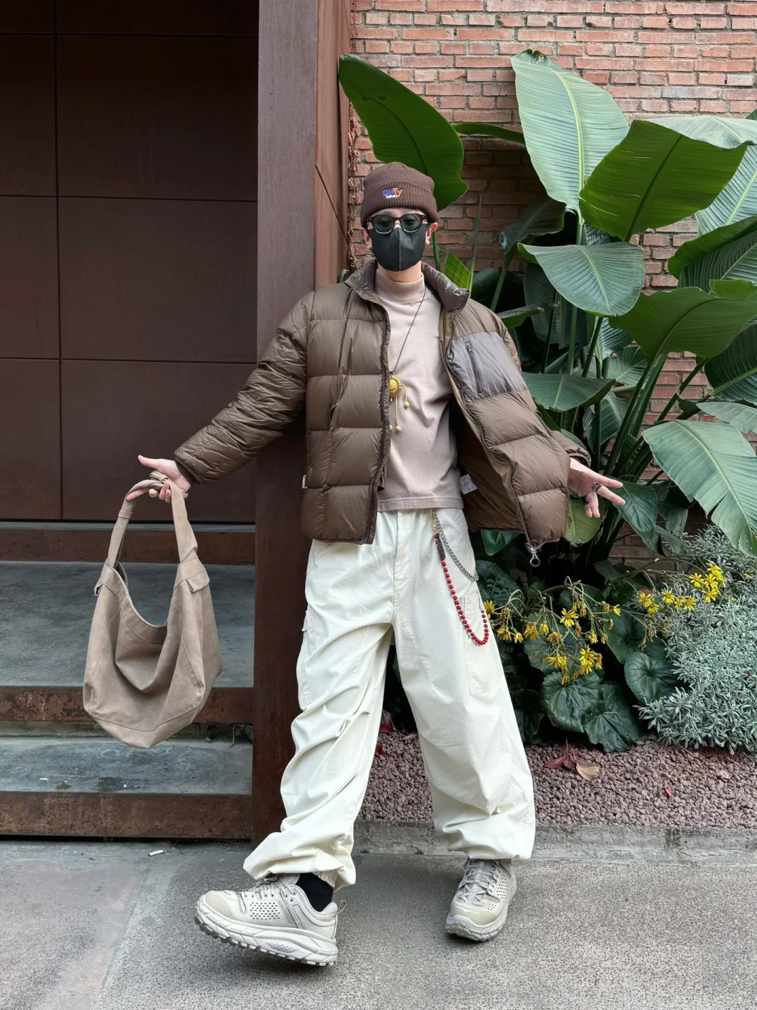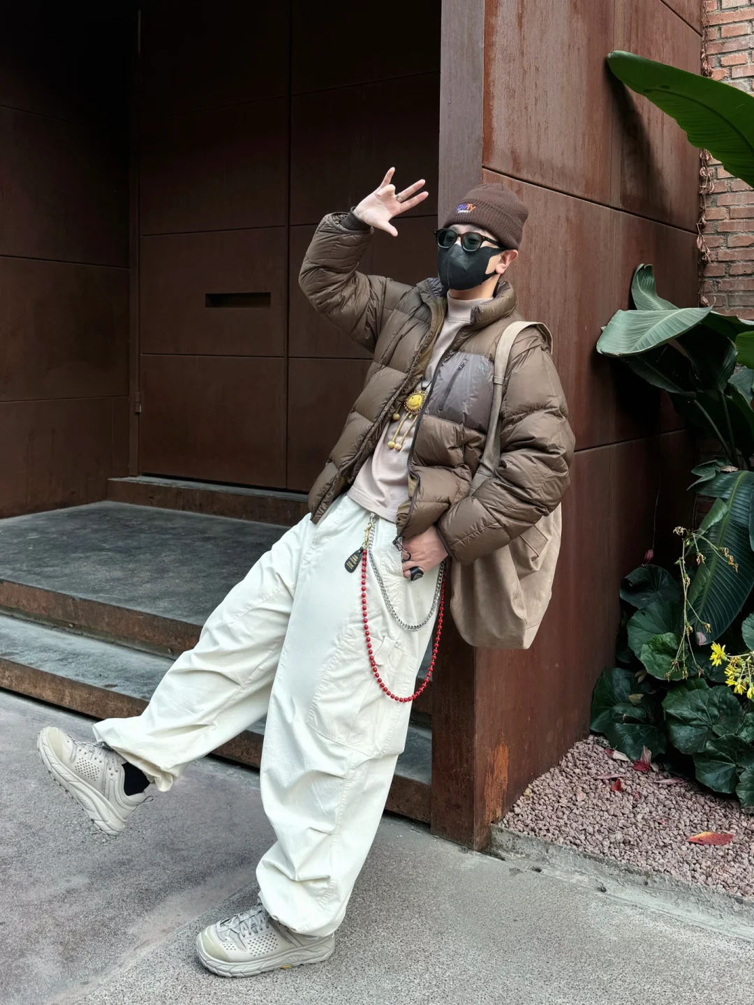 上深下浅,用米白色阔腿工装裤兜住视觉重心👀,