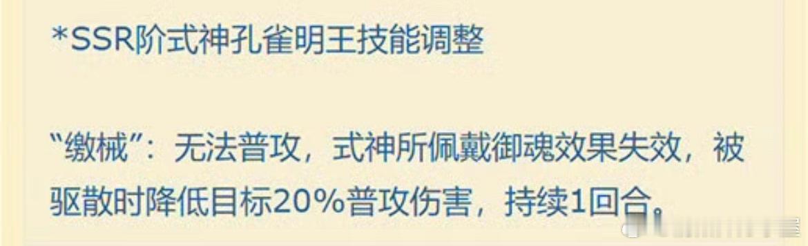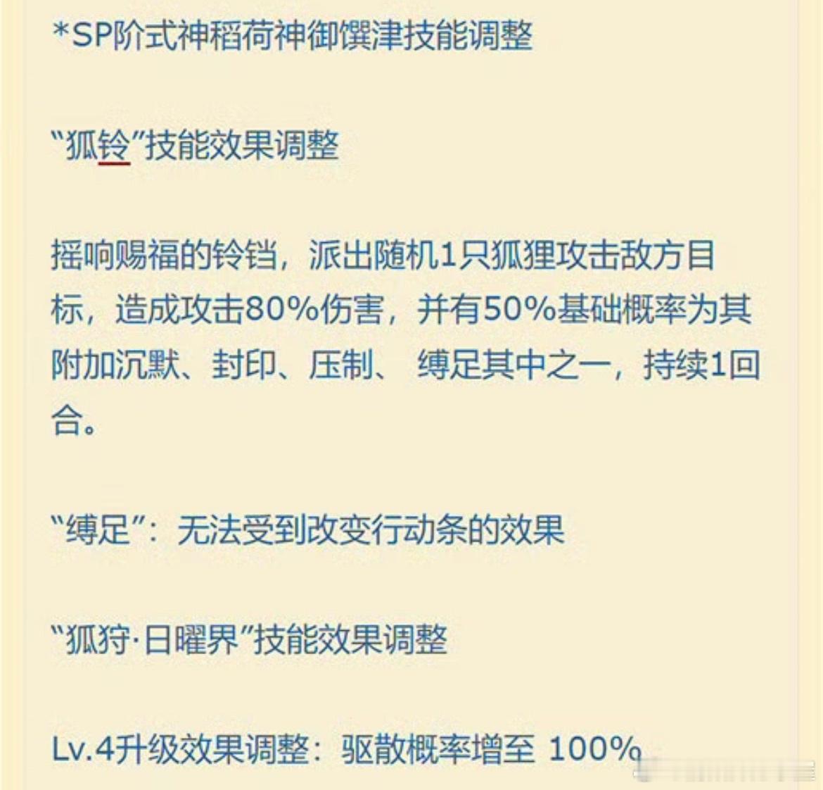 SP炼狱茨木童子、SP少羽大天狗、SP稻荷神御馔津、SSR孔雀明王的式神技能调整。