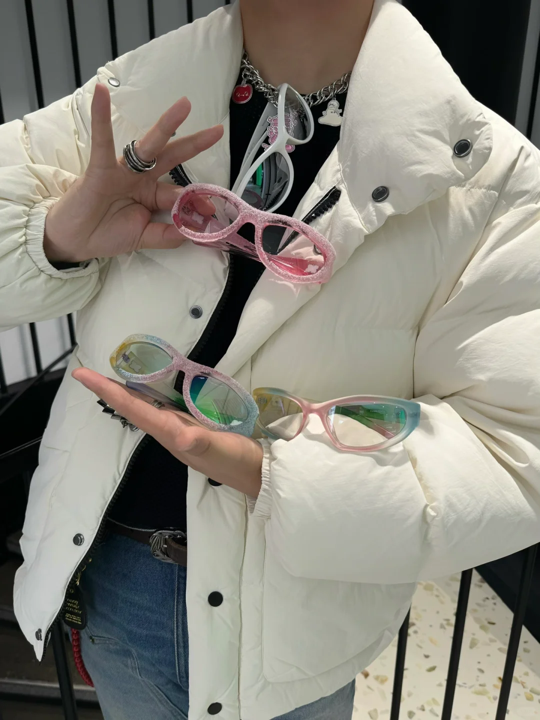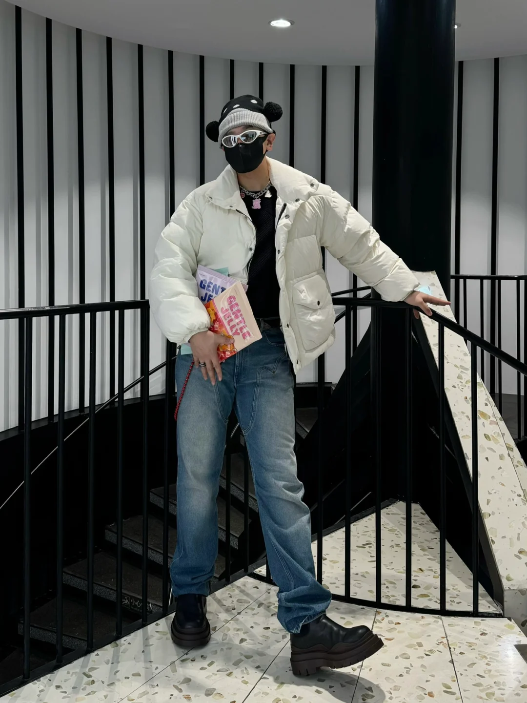 和GM吃糖的一天🍬谁让我是眼镜控哈哈👓~ 可爱到想吃掉的墨镜🤓随便搭都是多巴胺🌈❕ 成都下雪了❄️正好给大家分享下冬日Outfit: 白羽绒服➕蓝牛仔叠搭,亮色系减龄显白之余是青春自由的氛围感⚪️🔵~ 用厚底皮靴穿出大长腿🦵拿捏顶男Vibe🌪️, 也别忘了可爱的雪人小项链⛄️点缀细节,呼应今天的冬日多巴胺穿搭🌈❕ - -