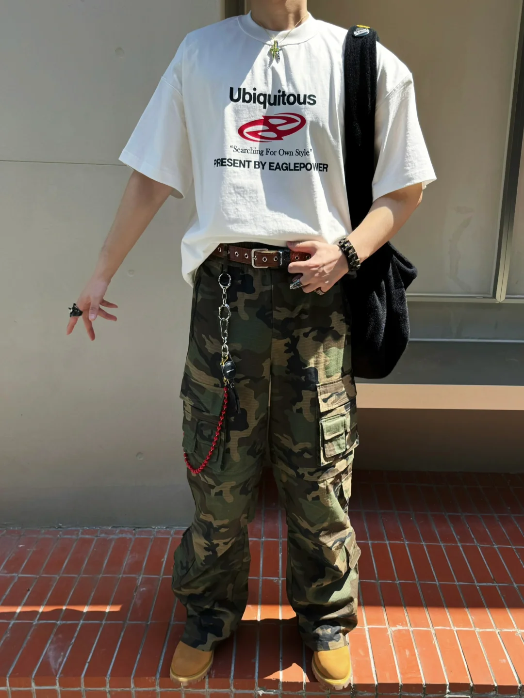 潮流是个轮回♻️本就没什么过时不过时之说~ 前提是你要选对单品❕刮起一阵迷彩风🌲❕ 过于Hype的元素要帅出高级度🌪️那就选不同材质质地的迷彩单品,搭出更Vibe的造型💡~ - 近日心头爱👖一裤多穿:可拆卸炮弹裤➕标语素Tee叠搭,上素下花拿捏层次感✔️~ 配合豹纹腰带和毛毛包包的细节点缀✨, 踩一双大黄靴创造堆叠感也能穿出大长腿🦵~ 墨镜一戴是你高攀不起的拽哥男明星😎, 抓个造型出门,今日份顶男提前入夏🔥谁能告诉我成都为啥这两天这么热😢哈哈哈💯~ - -