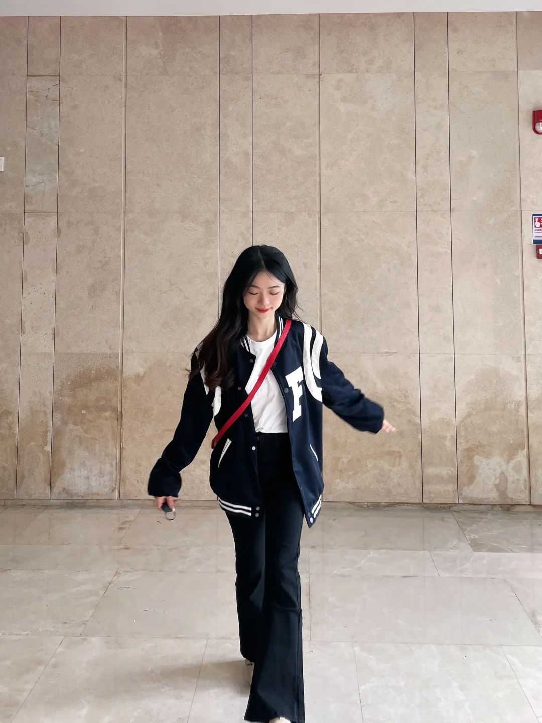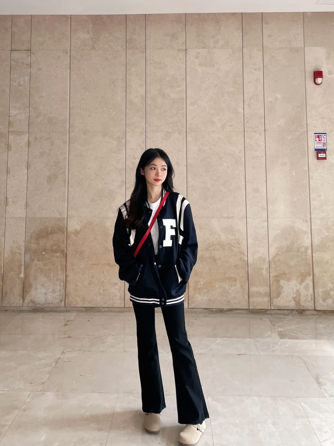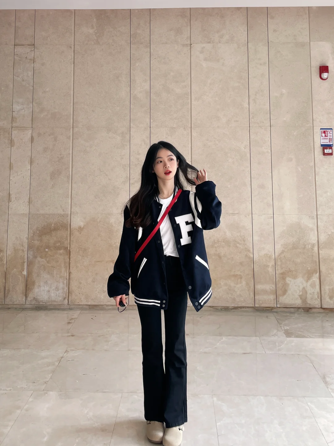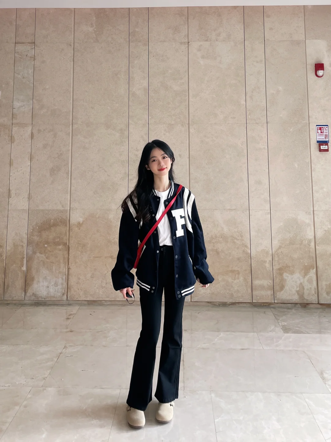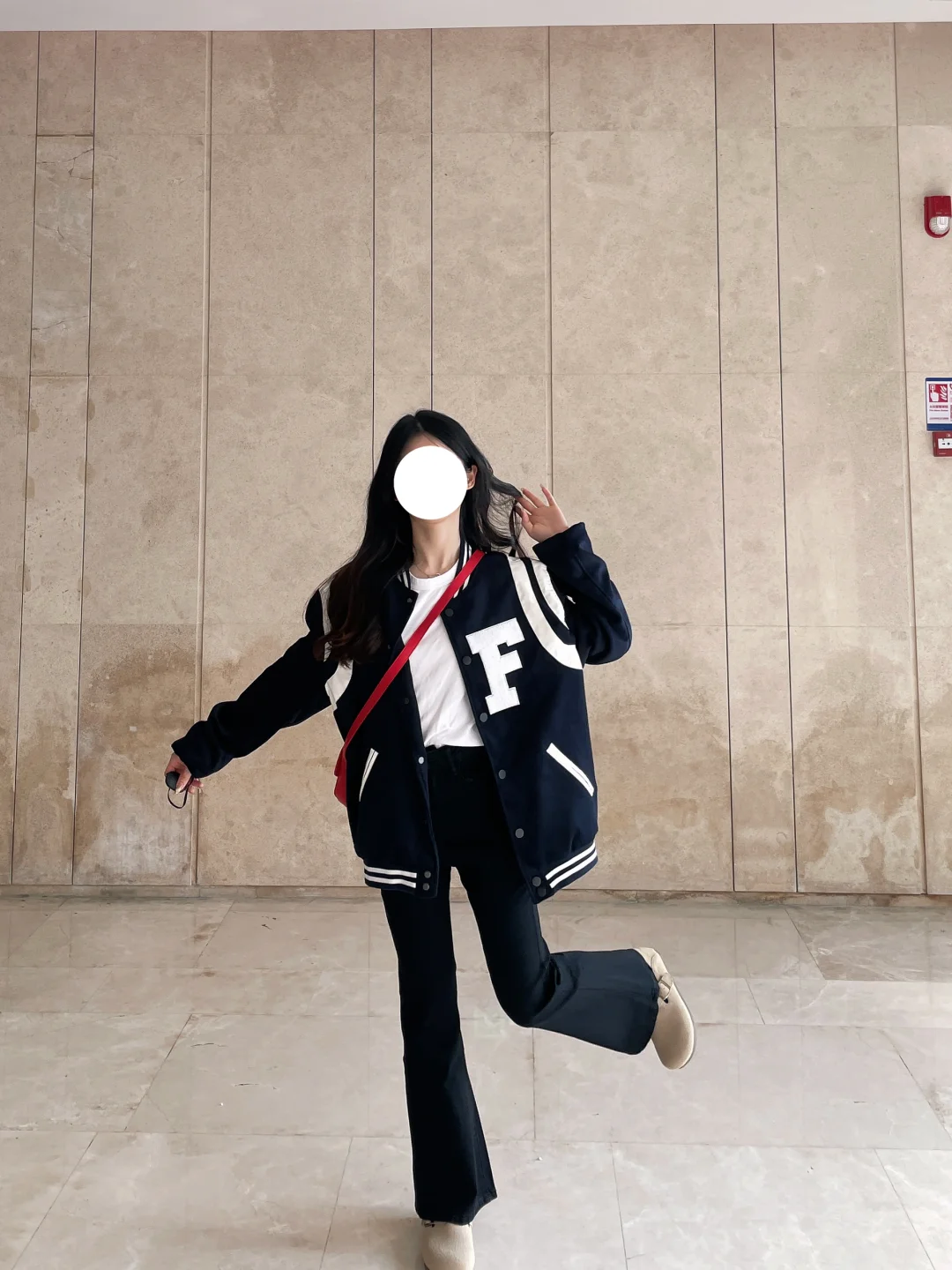 今天有点酷酷哒!!微喇叭裤搭配棒球服外套~ 韩系日常的款式
