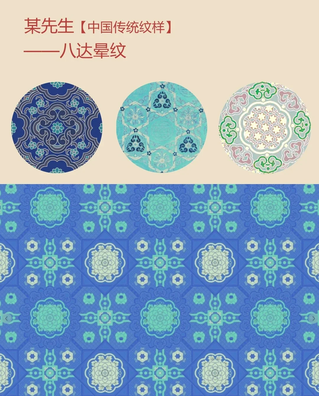 8️⃣八达晕纹:八达晕纹由八个方向的图案组成,象征四面八方的通达和无限,常用于古代建筑和织物,表达广阔和无限。