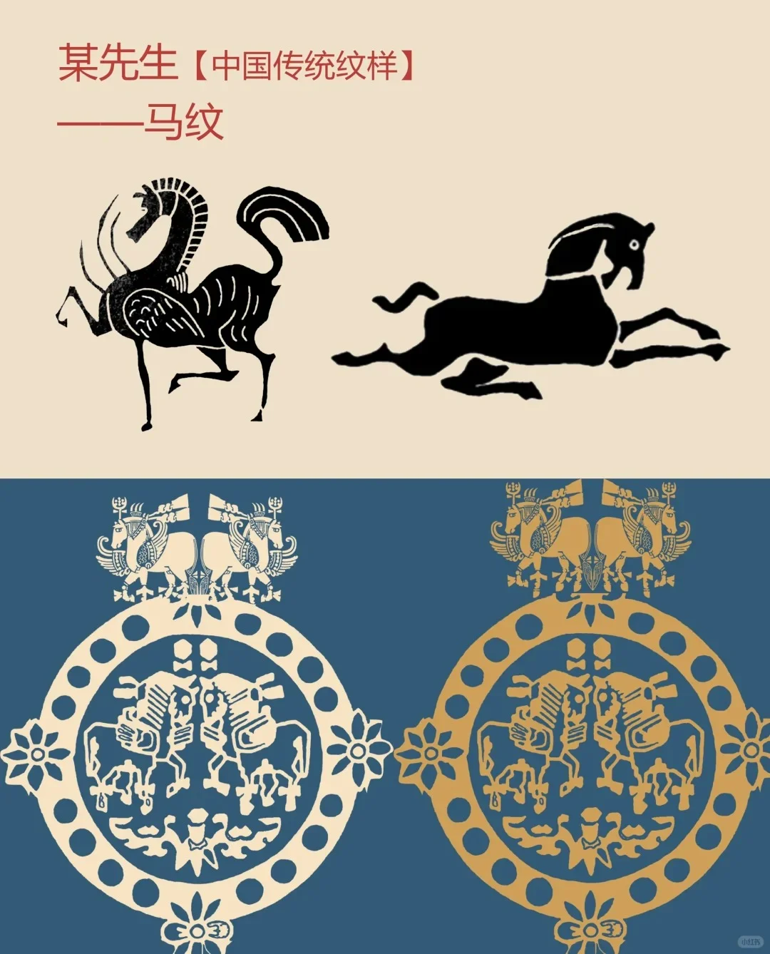 6️⃣马纹:马在中国文化中象征力量和速度,马纹常用于战马装饰和贵族用品,体现勇猛和尊贵。