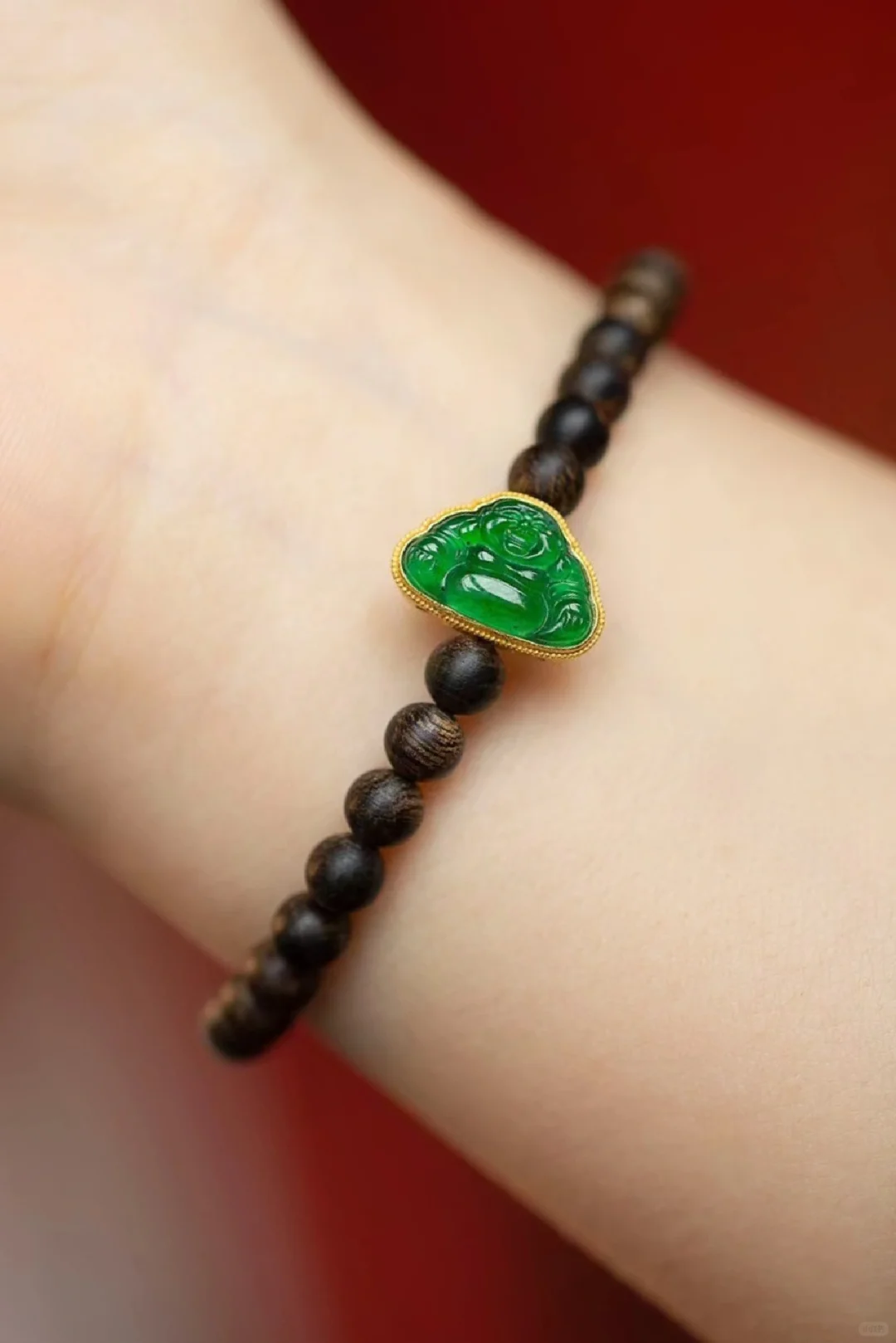 弥勒佛翡翠,沉香水串 4mm 沉水级精品小手串让人爱不释手,小高货,全品相满油脂,品质优秀。