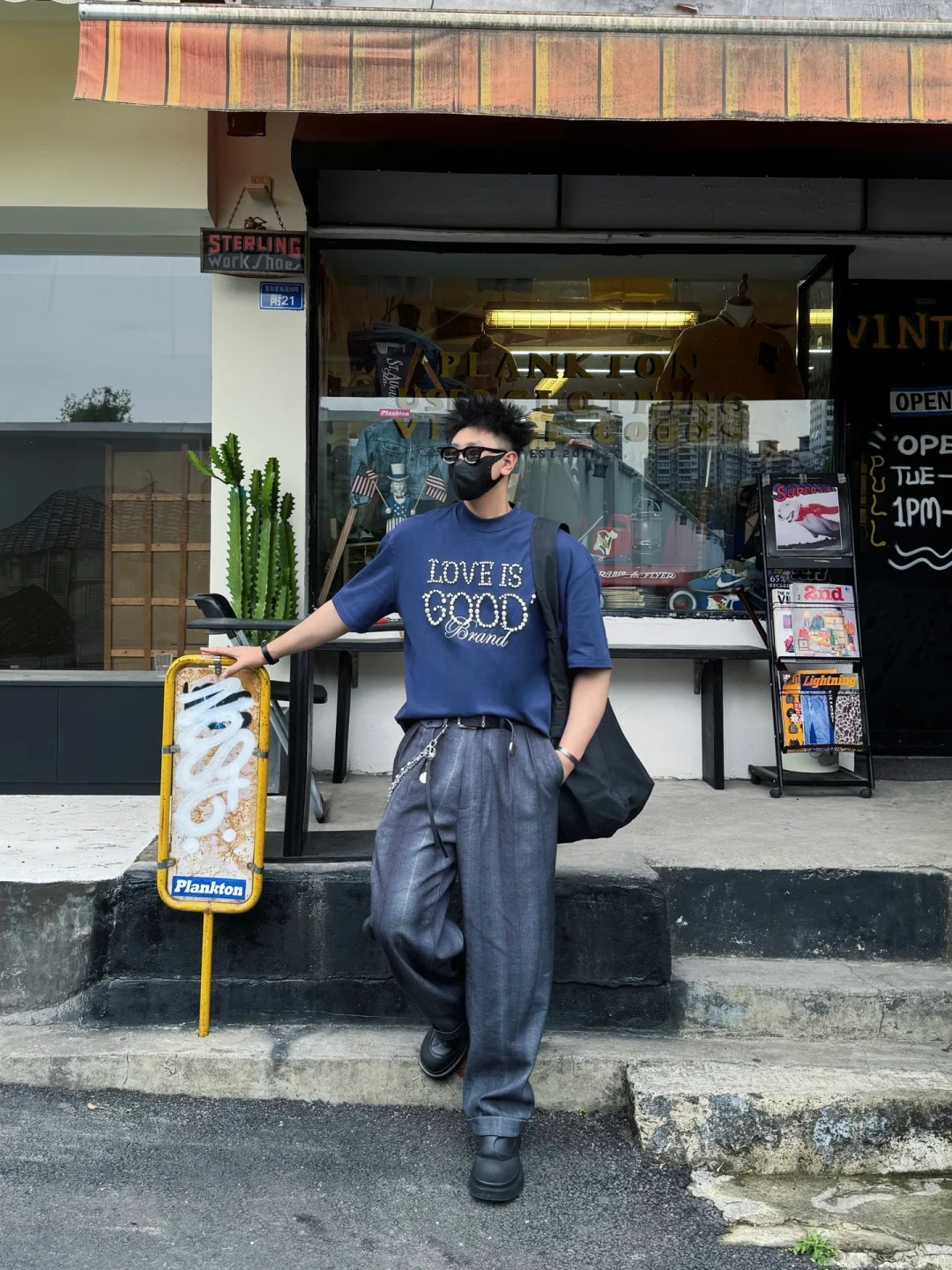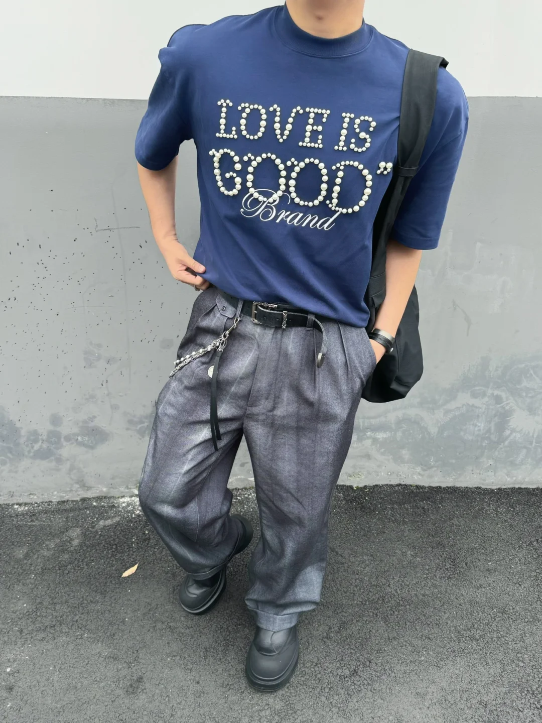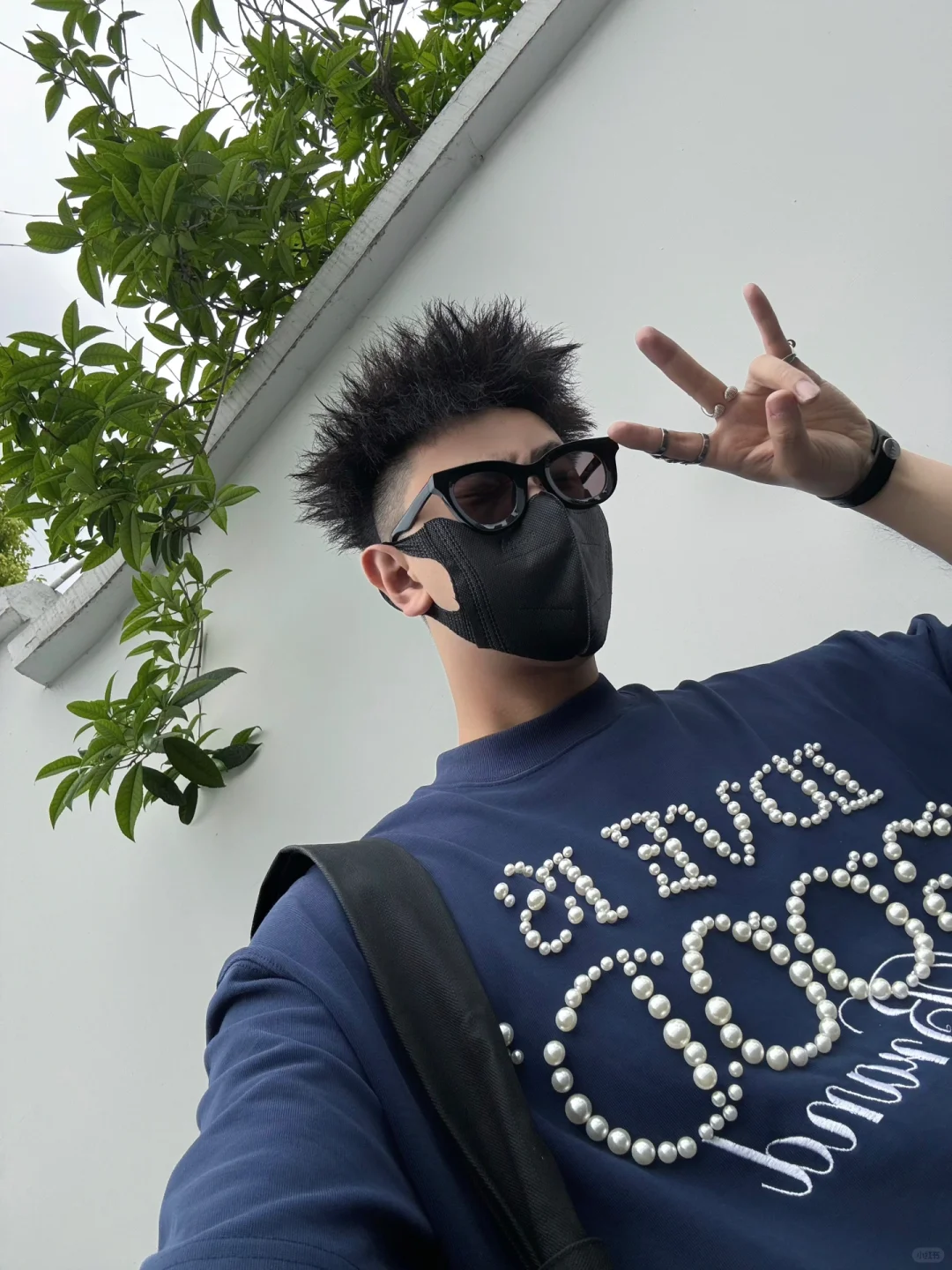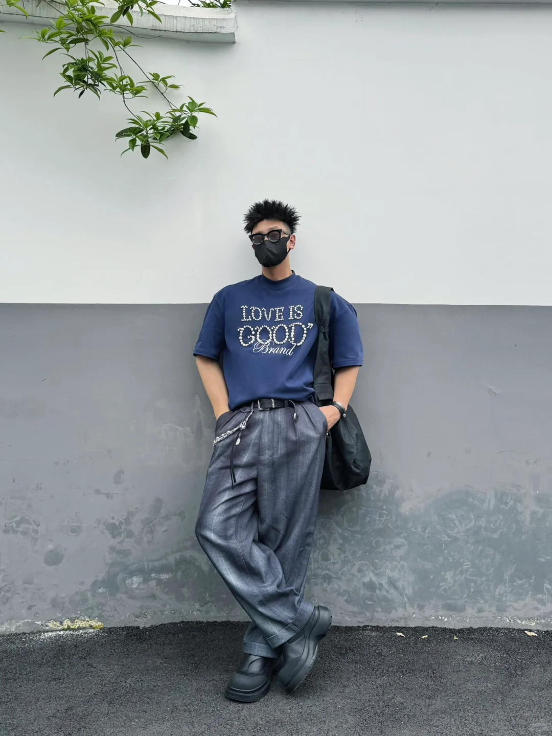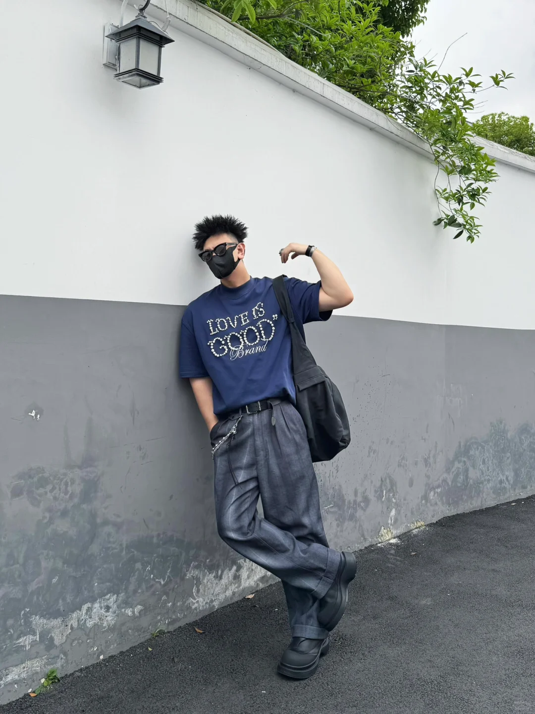 给阴天来点低饱和度的震撼吧🌧️❕ 莫名对珍珠元素和蓝色系好爱🔵~ 趁夏天正式来临之前用重工Tee保暖☀️, Love Is Good对浪漫珍珠毫无抵抗力😭❕ 年初捡漏的这条Beams真封神了🔥,就是似扎染非扎染的效果,搭配褶皱绅士口袋太优雅了🦋~ 厚底皮鞋配皮包▪️墨镜一戴sei也不爱, 阴天也要帅气出门🤵保持浪漫入夏愉快💯~ - -