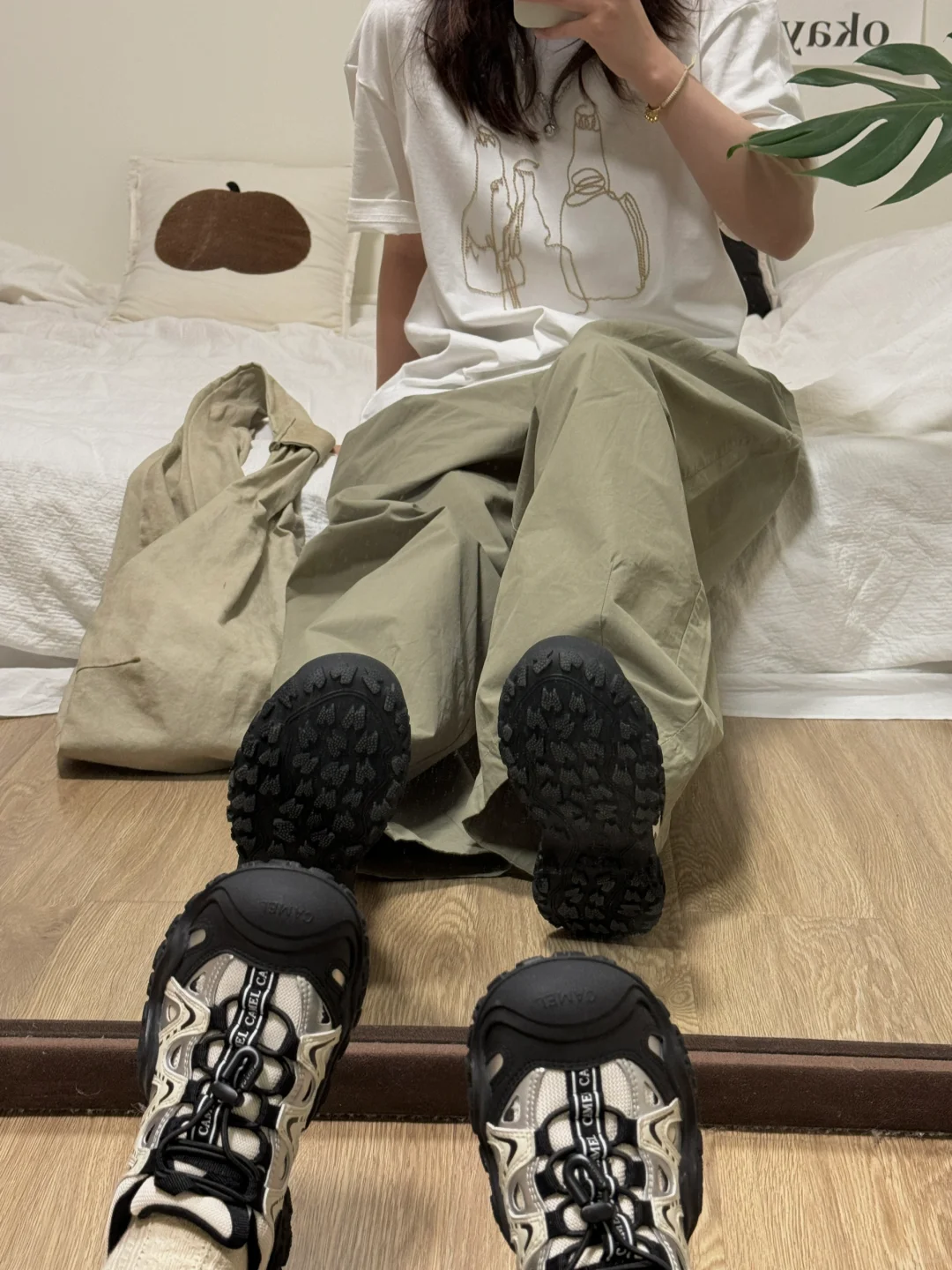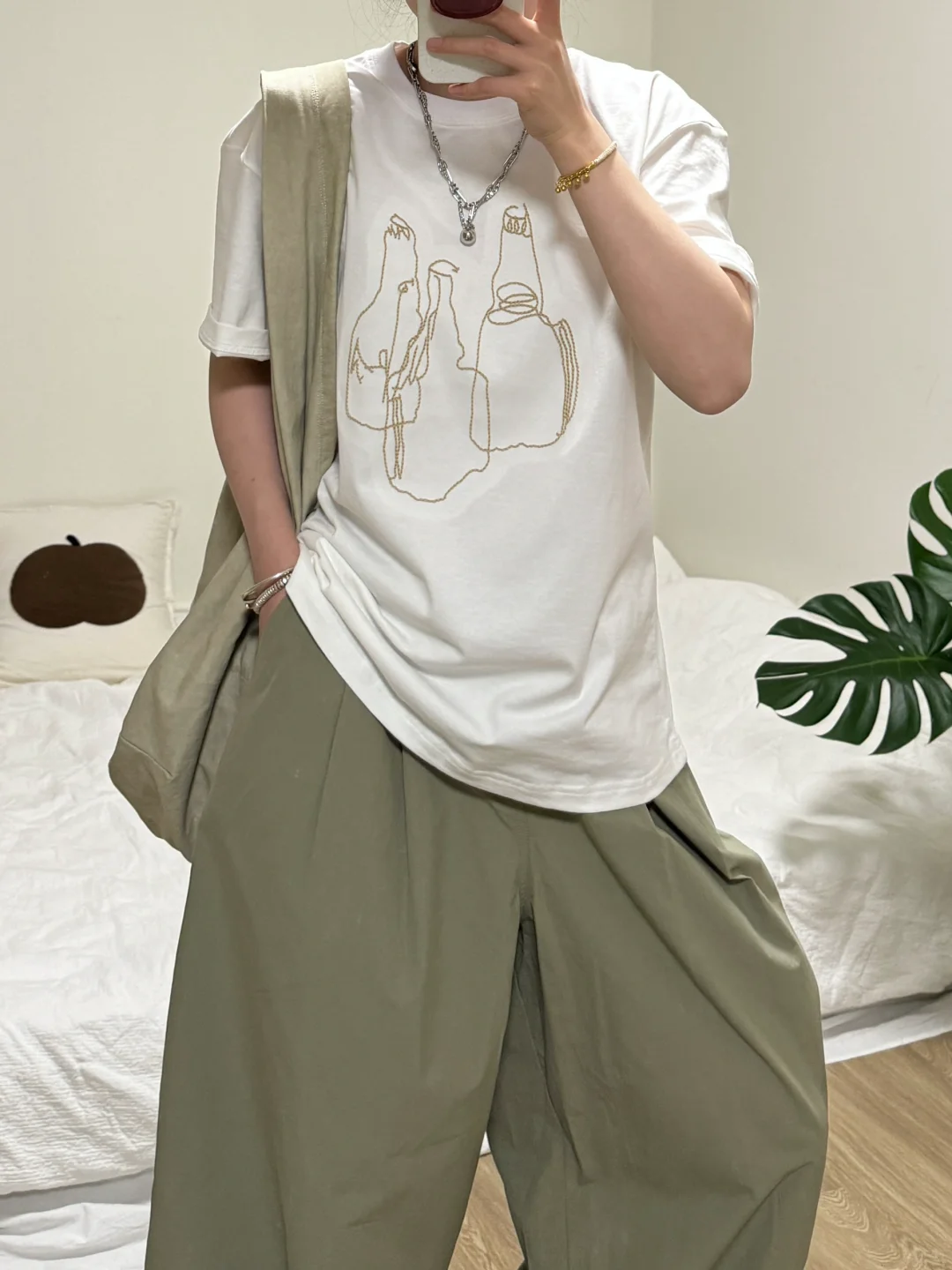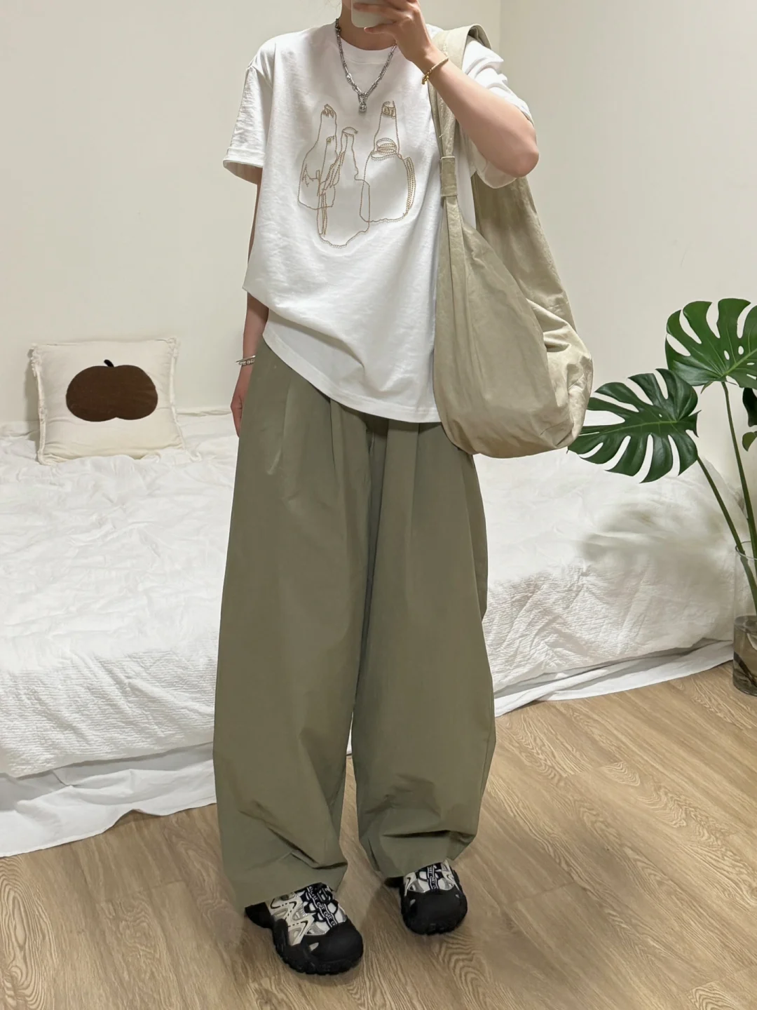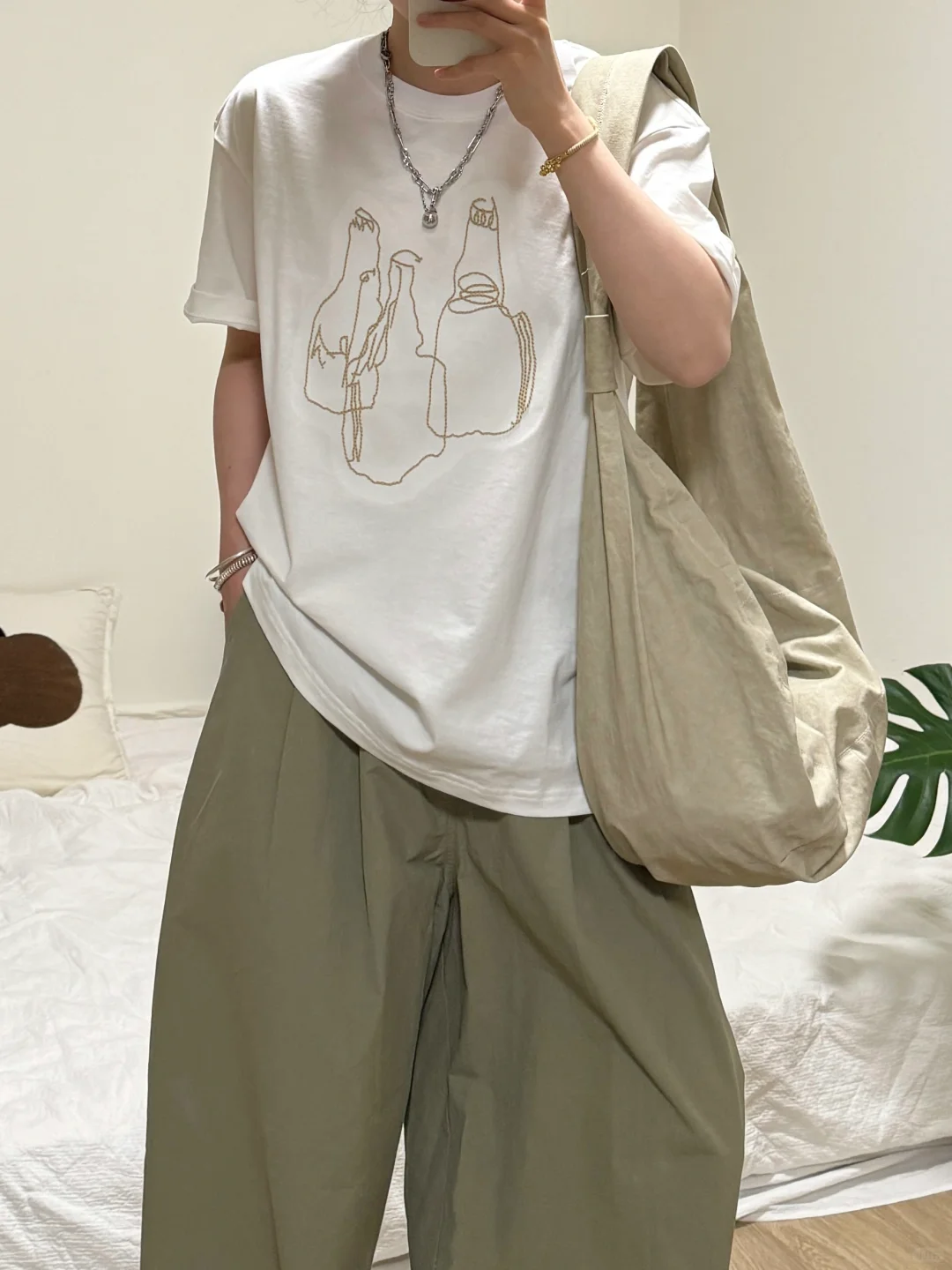 这年头,短袖t恤还能搭配刺绣阔腿裤?丑萌鞋是认真的吗?#韩系休闲# #穿搭技巧#