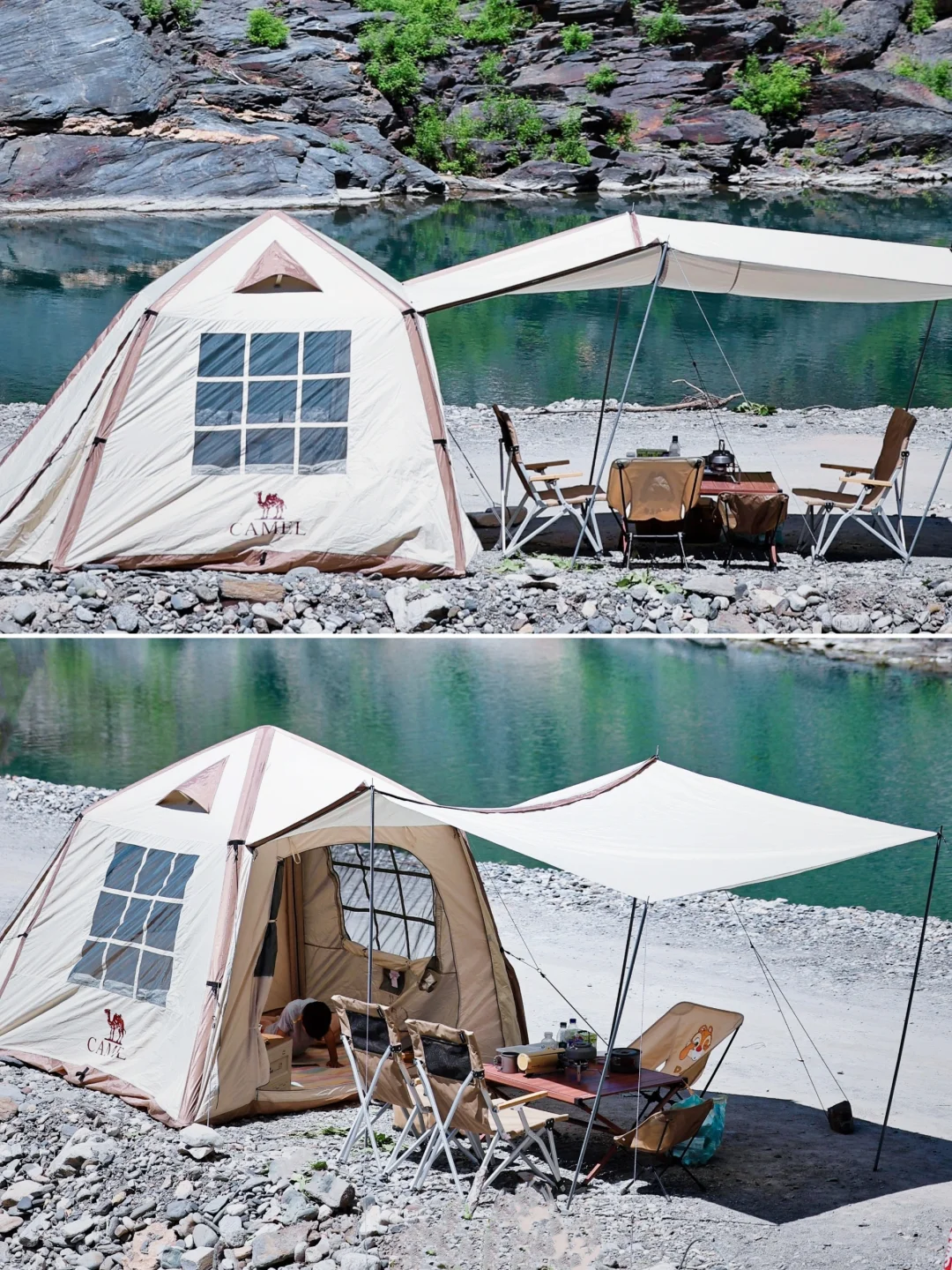 最近队友出差很多,经常是我带着幼崽露营,每次搭帐篷都让我很头疼,还好今年我们升级了新装备,就是这款【骆驼流云小筑】,我第一次get到了甩手式露营的快乐!