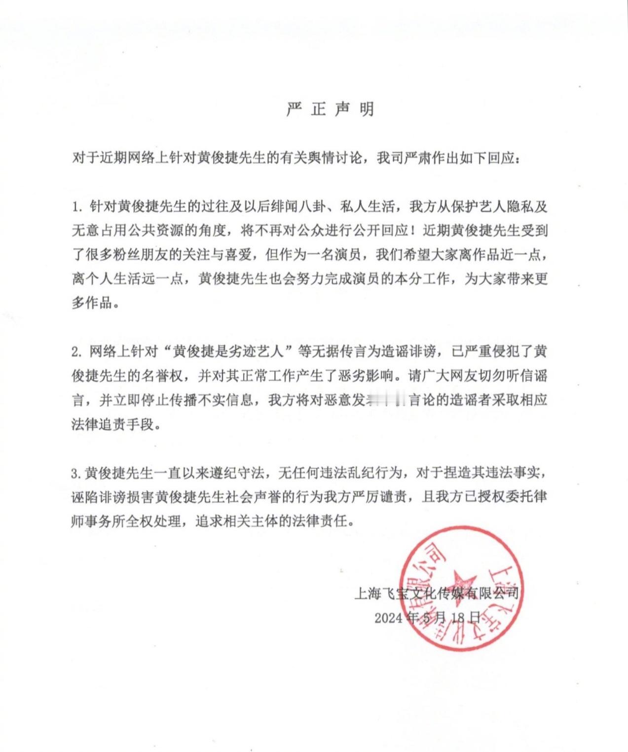 #黄俊捷工作室严正声明##黄俊捷工作室回应不实言论#啊这,我寻思黄俊捷那事儿不是传闻吗?还没实锤的事儿也不用一直揪着不放吧!再者说演员私生活还是不要和作品挂钩了!作品还是全剧组所有工作人员的努力成果,咱们还是作品见吧!