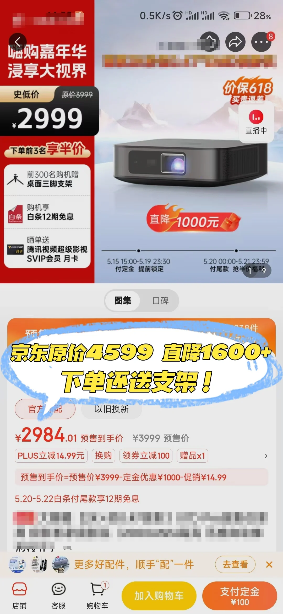 [哇R]哇塞!!! 手机上突然收到京东购物车🛒的降价提醒~ 原来是心心念念加购物车很久的投影仪来了一波大降价! 0.47DMD的投影仪?!!!从四千多降到2K+?!!! 这活动力度也太给力了叭~[派对R] 我已经心动了,不多说了,我先去下定金了~ [斜眼R]别怪我太着急没提前通知你, 👉去京东sou~1,就能直达疯狂星期一主会场,还能享受3c数码产品各种U会,9.9包邮、买一赠一、各种赠品、更有5折、3折、2折等等U会,到手不要太划蒜